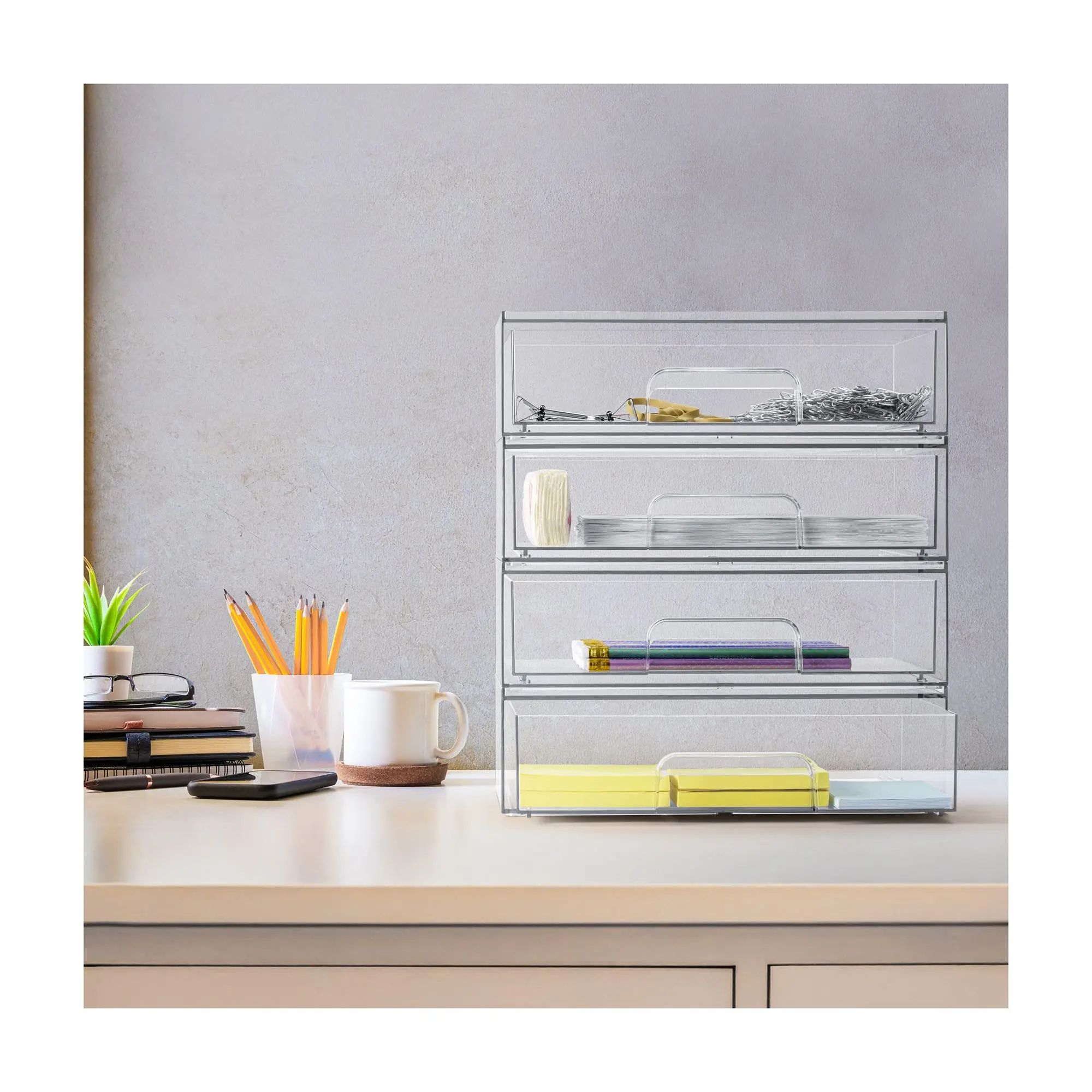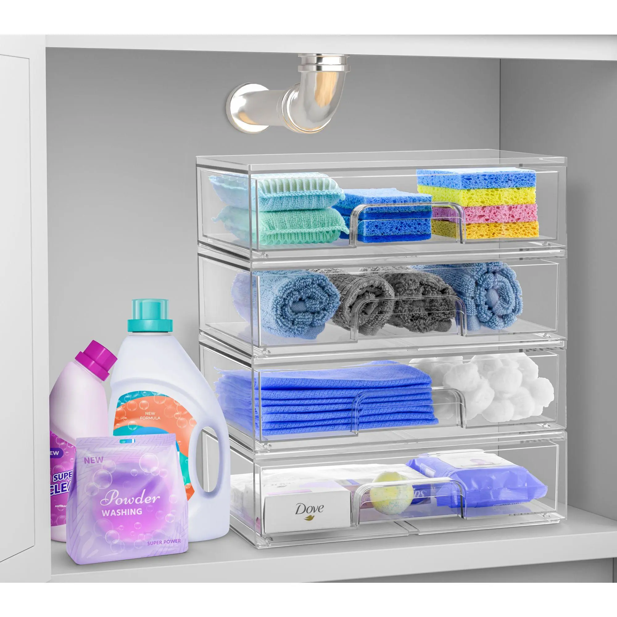 The Sorbus Clear Organizer Drawers offer a versatile, stackable design to maximize storage and customize your space. Perfect for organizing countertops, cabinets, or under-sink areas, this acrylic system is ideal for makeup, pantry items, office supplies, and more. With smooth-gliding pull-out drawers and built-in handles, accessing essentials is effortless. These durable and stylish organizers blend seamlessly with any decor and are easy to clean with soap and warm water. From Sorbus.