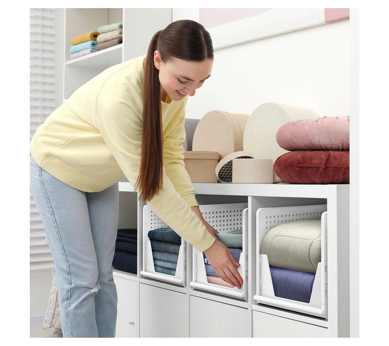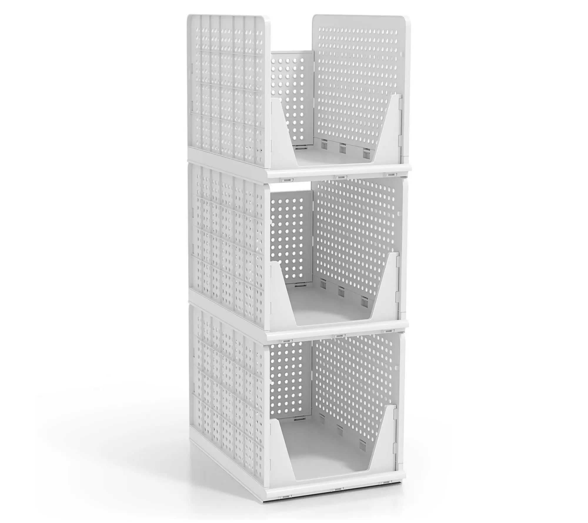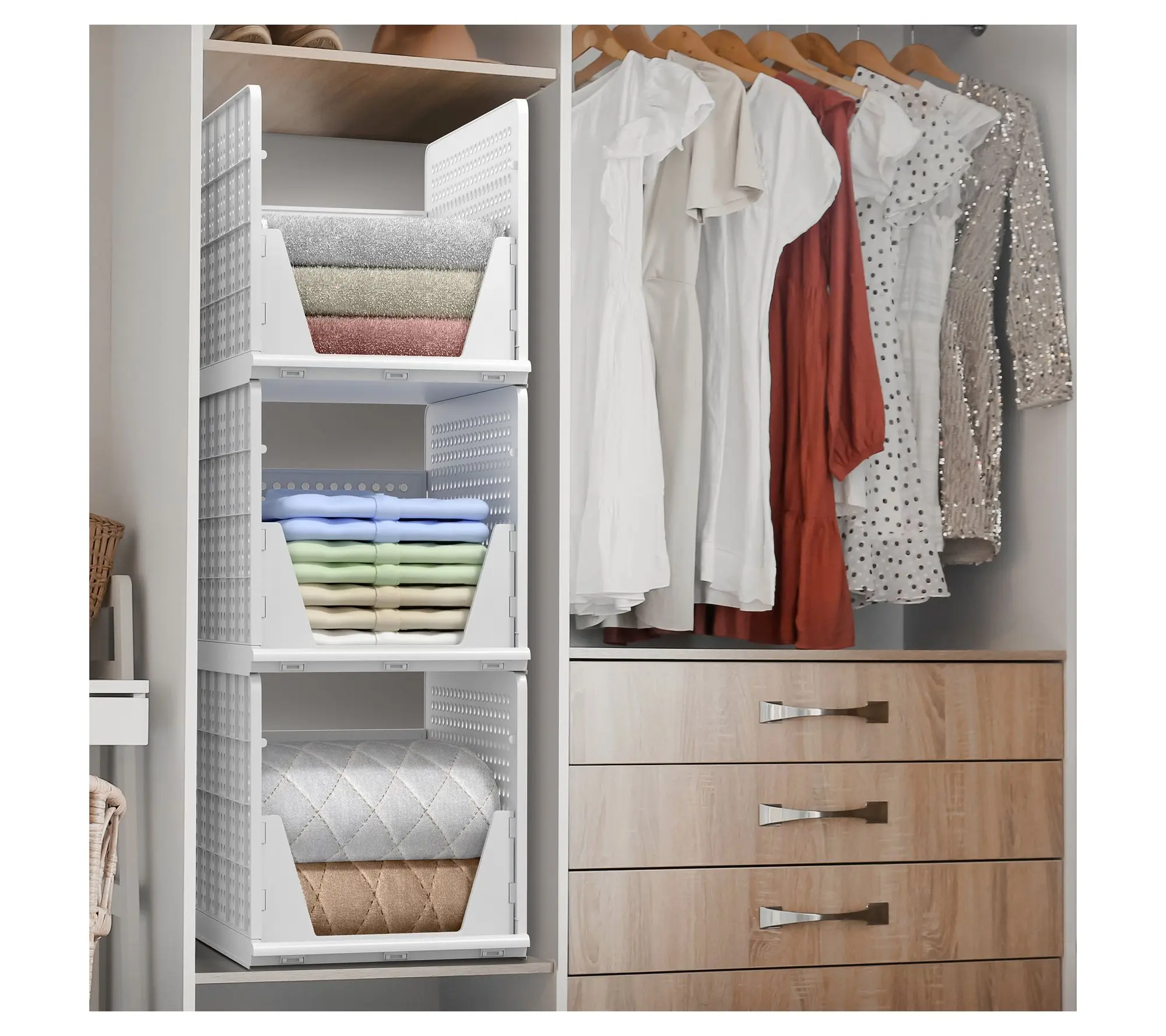 ·Stackable baskets ideal for neatly organizing clothes, linens, toys