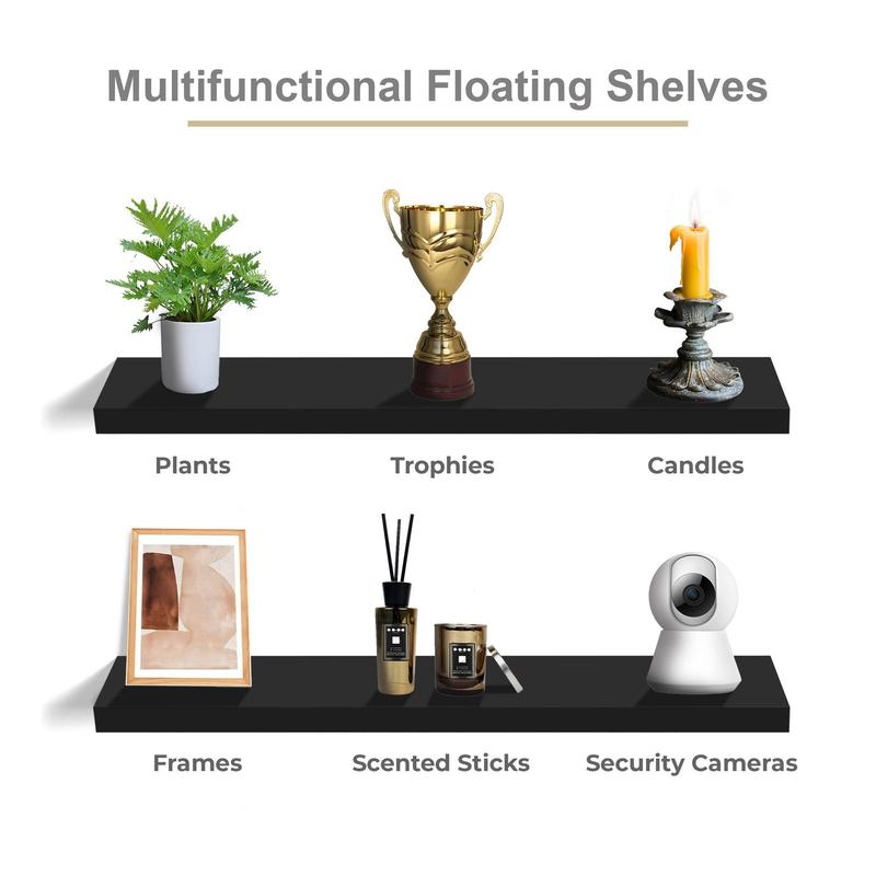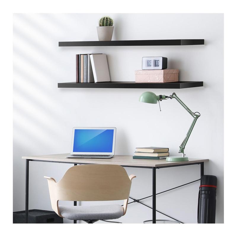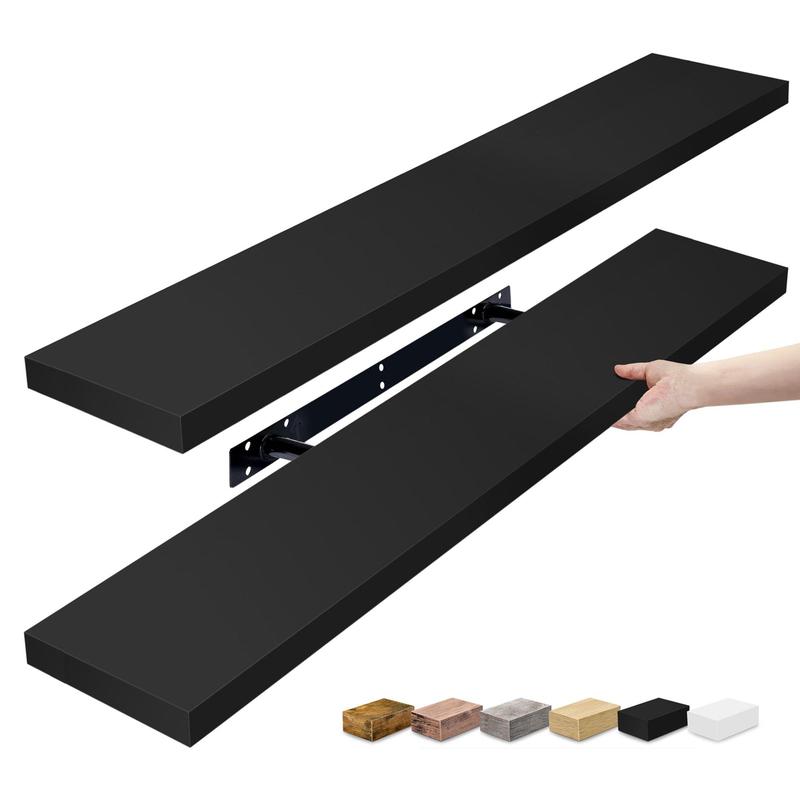 Display your cherished items with the stylish Sorbus long floating shelves. This set of two shelves features a beautiful faux wood design and smooth matte finish, perfect for adding a touch of elegance to any room. Whether you need extra storage or a place to showcase your favorite decor, these shelves are easy to install and versatile enough to fit any space. From Sorbus.