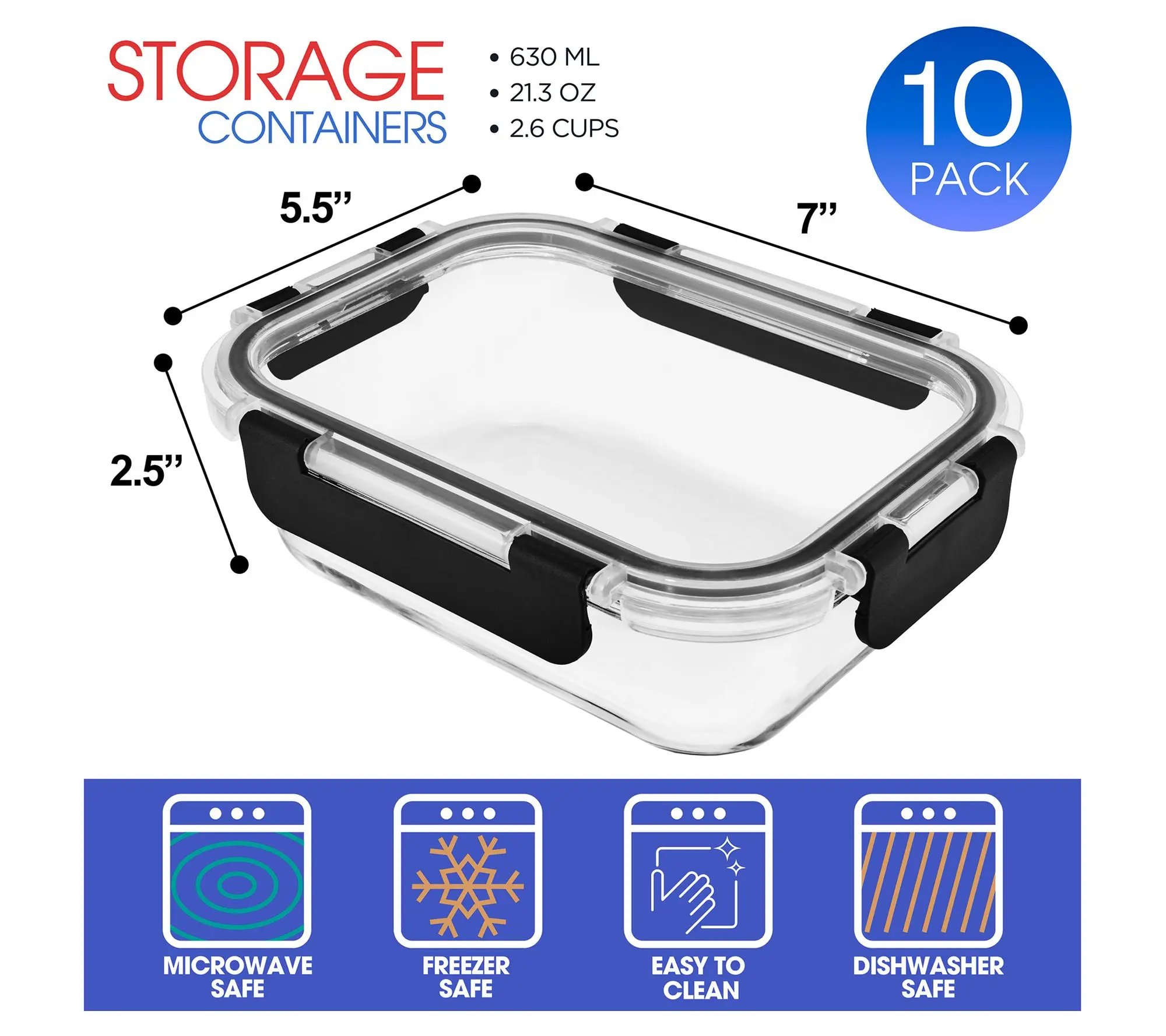Sorbus Glass Meal Prep Containers with AirtightLids 10-Pack