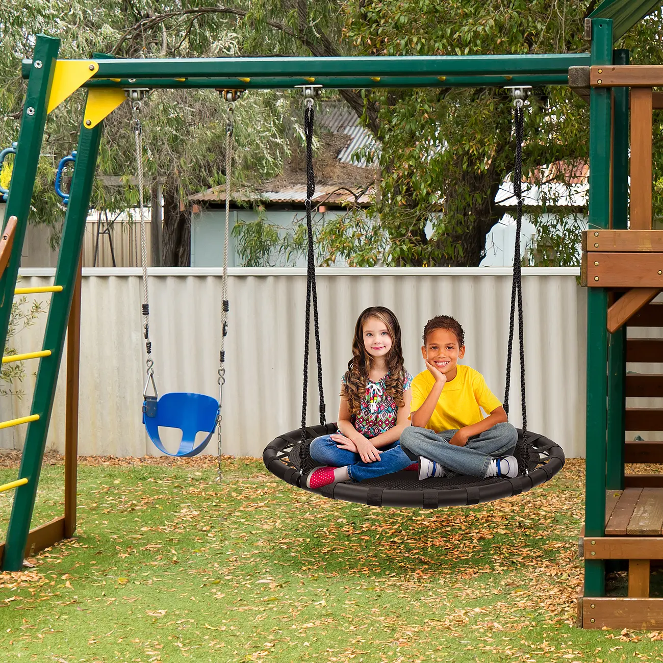 ·With a 40" diameter, this swing provides ample space for kids to climb inside and spin, bounce, twist, or enjoy playtime with friends.