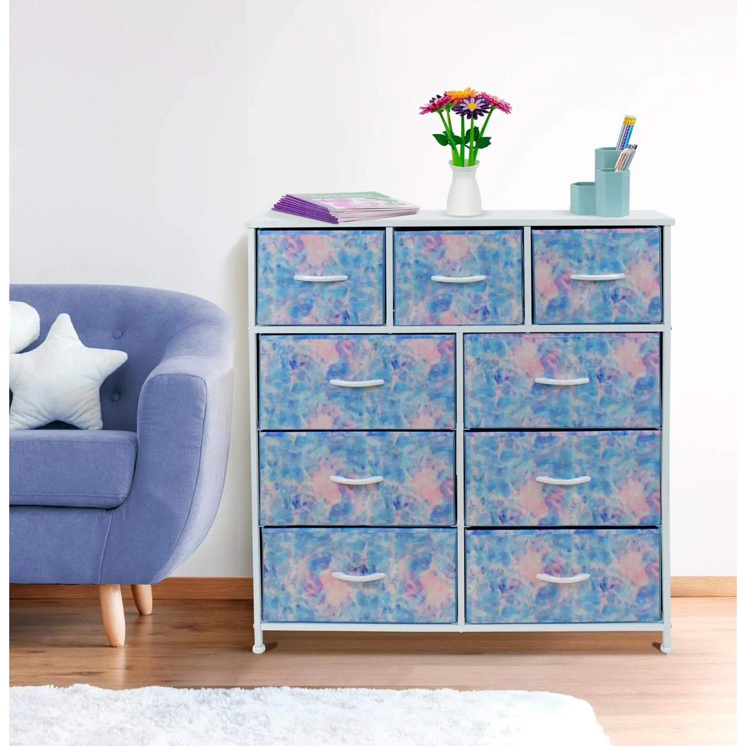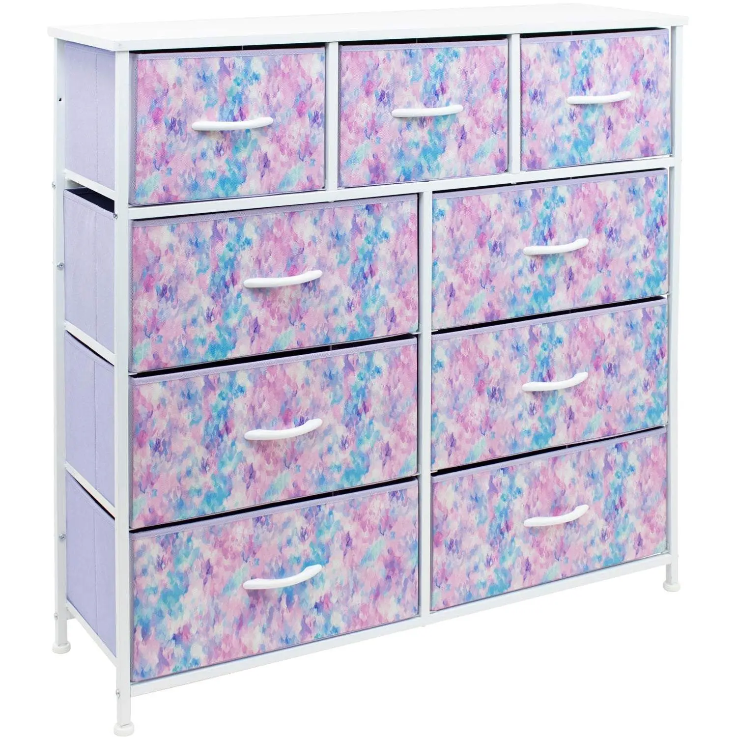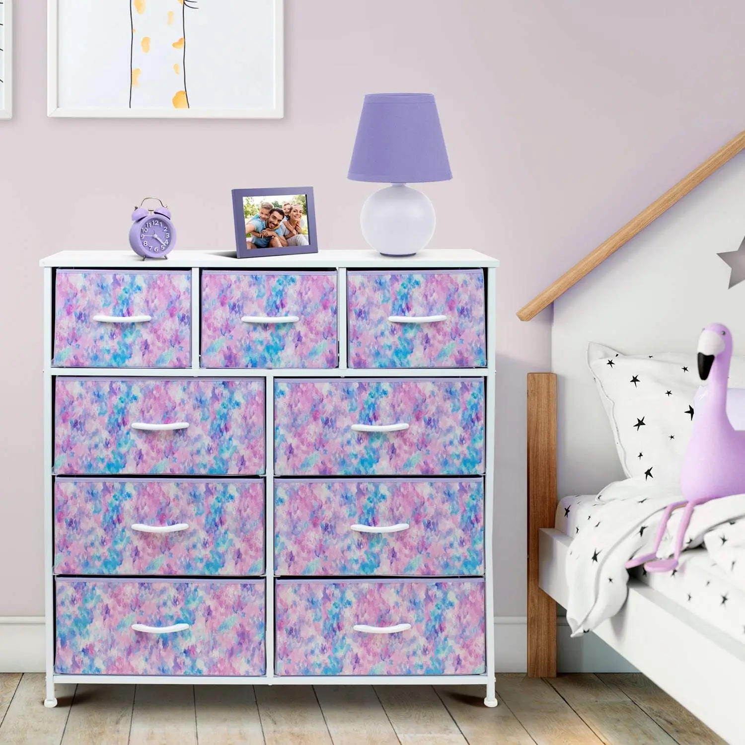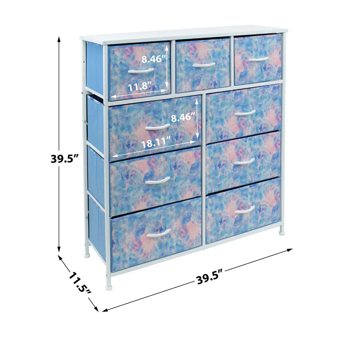 Update your child’s room with our 9-Drawer Dresser. This colorful chest features a tabletop surface and pull-out drawers to tuck away household clutter. Place all of your child’s folded t-shirts, jeans, and pajamas, or extra blankets and toys within the spacious fabric drawers.