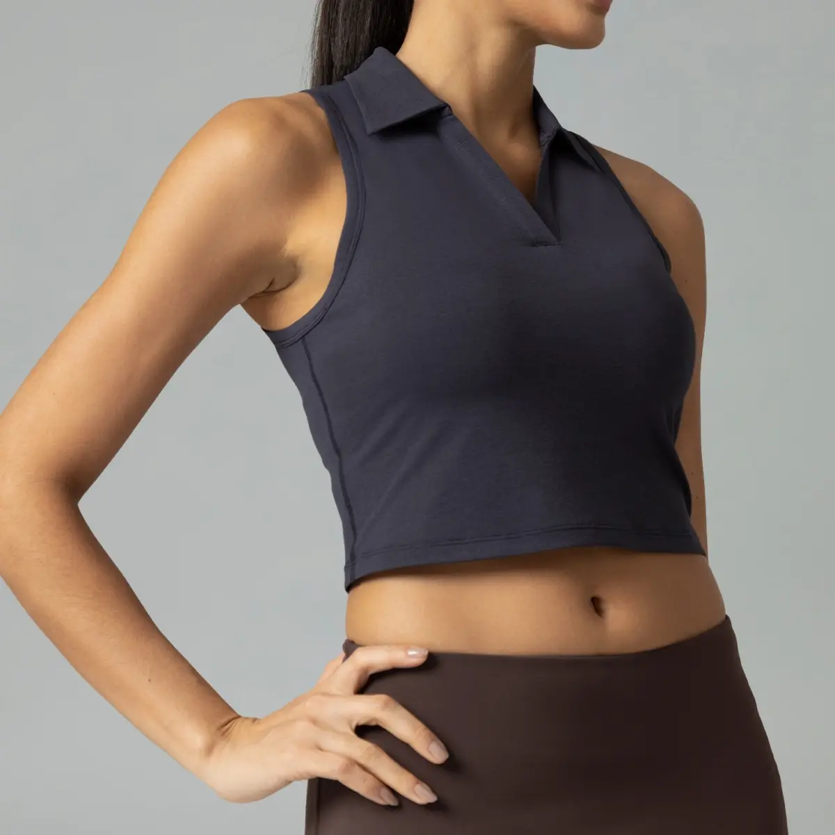 ·Classic Polo collar and sleeveless–refreshing and non-stuffy, combining sporty vibes with casual fashion appeal.