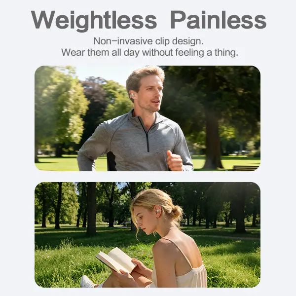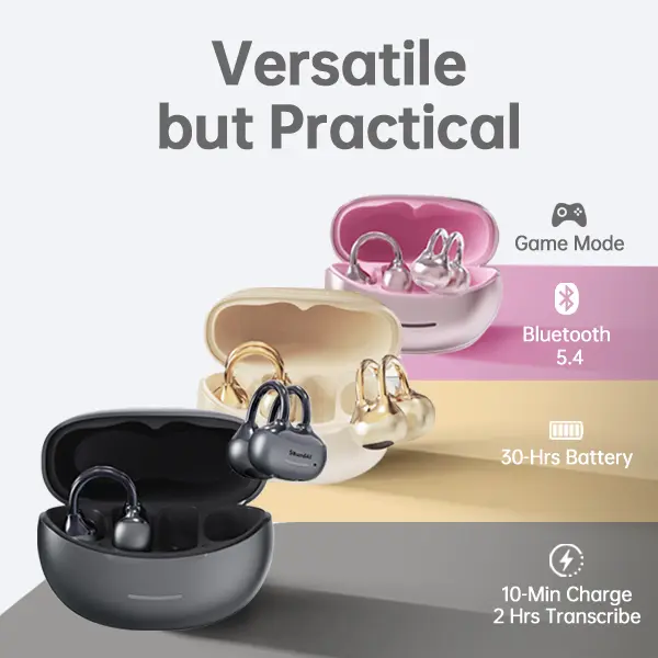 SoundAI FairyClip A3 Jewelry Inspired Design High-gloss finish that blends seamlessly with your daily accessories. Stylish, discreet, and premium. All Day Open Ear Comfort Experience true comfort with our non-invasive clip-on design. Stay aware of your surroundings all day. Upgraded Stable Connectivity Enjoy a stable 33ft (10m) free range without signal interruptions. Unlock AI Features via App AI Real-Time Translation: Communicate globally without barriers. AI Voice-to-Text: Instant transcription for meetings and notes. Custom EQ: Pro-grade EQ adjustment to fit your music style. Extended Battery Life All-Day Playtime Up to 30 hours of battery life with the charging case. Design: Open-ear jewelry clip Connection Range: 10 meters (33 feet) Total Playtime: 30 hours Charging Port: USB-C Smart Features: App-based EQ and AI Quick Start Tips: For the best experience with AI translation and sound customization, please download our app by scanning the QR code included in the packaging.To unlock AI Translation & Custom EQ, please ensure Bluetooth and Location permissions are turned on.