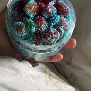 Delicious 🤤 We're hooked! I knew we were going to love these so much, I got a large right out the gate. Covered in sour powder, bursting with flavor. The gusher is also sour on the inside!