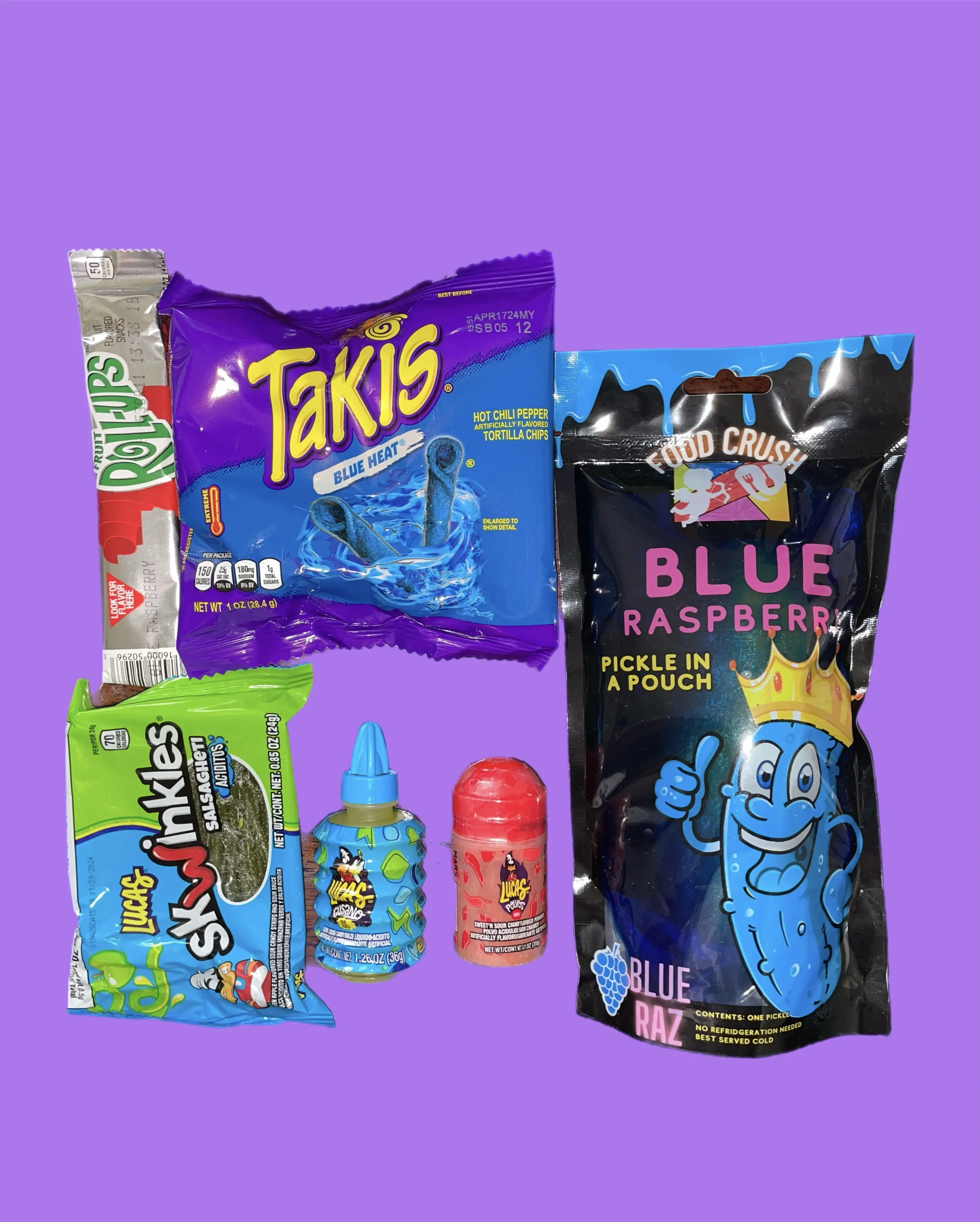 Add some excitement to your next snack or meal with these delicious Blue Raspberry Sour Pickle Kit!