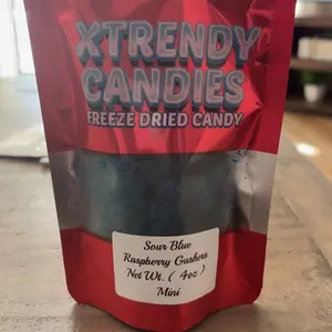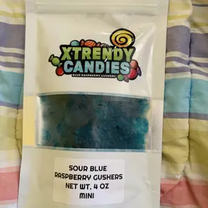 The sour blue raspberry gushers are good once you first try it it’s very sour but once you get used to it it’s very nice and good for a sweet tooth, it will come in a brown small box.