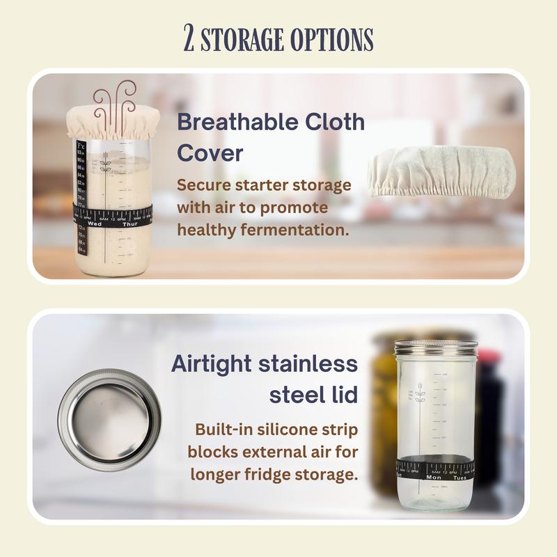 ·Sourdough Starter Storage Options | High Quality Elastic Cloth Cover & Rust-Proof Stainless Steel Lid