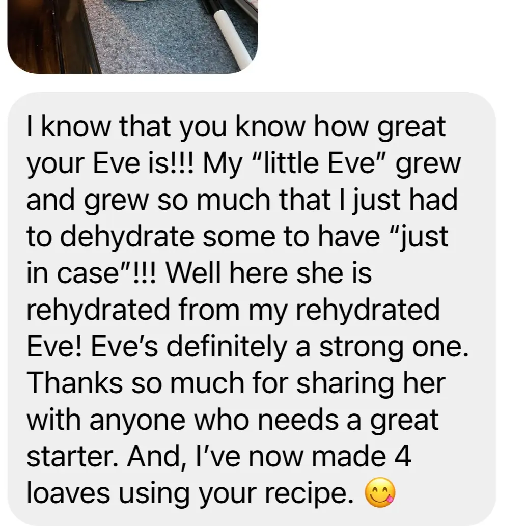 Love my Eve starter I’ve already made four loaves with it. GREAT STARTED!!!!