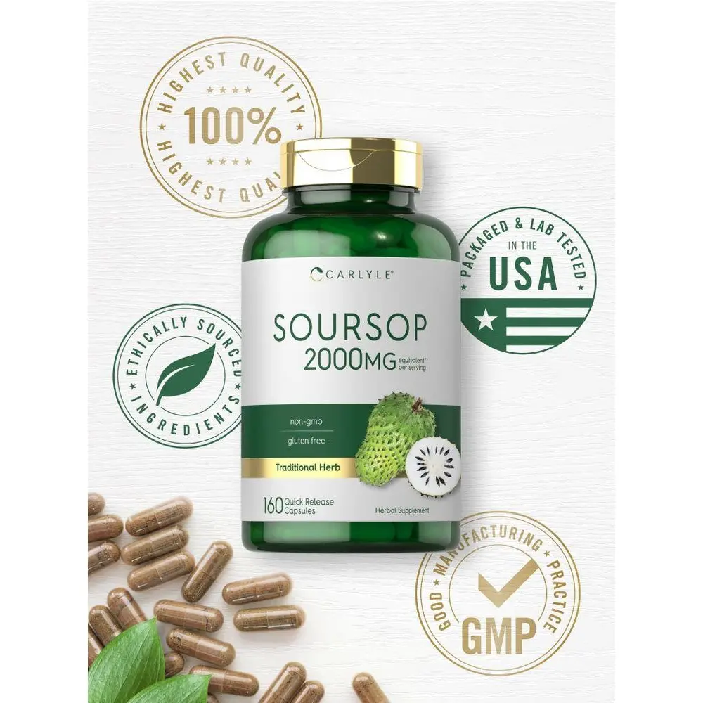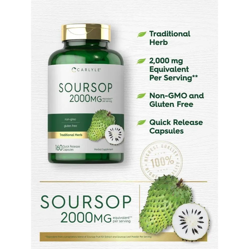 Experience the power of the tropics with Carlyle Soursop! Our herbal supplement features a Proprietary Blend that delivers the equivalent of 2,000 mg Graviola leaf and fruit extract per serving in quick release capsules.