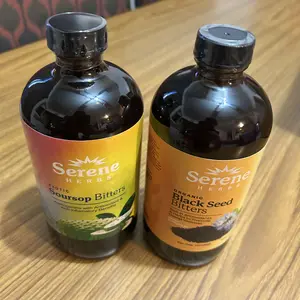 Serene Herbs Soursop & Black Seed Bitters Bundle combines two 16 fl oz bottles, featuring over 65 organic herbs like soursop, black seed, sea moss, moringa, milk thistle, and ginger. This trending wellness duo supports digestion, immune health, and natural vitality with a bold, authentic herbal flavor.