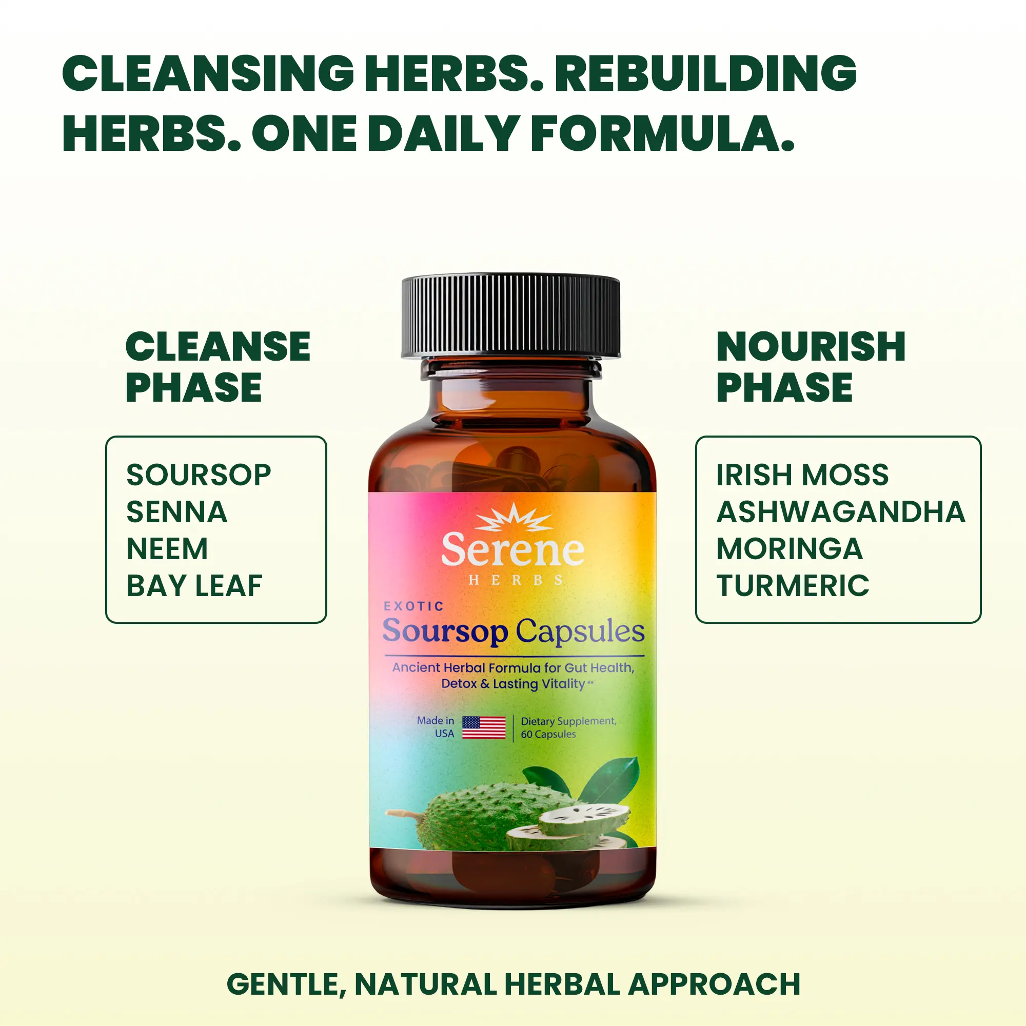 ·Potent 20:1 Soursop Extract – Daily Herbal Gut Support Each serving delivers 350 mg of Soursop (Annona muricata) 20:1 extract, traditionally used to support digestive comfort, cellular health, and immune balance. Unlike raw powders, our high-potency extract equals 7,000 mg of fresh fruit, making this one of the strongest Soursop supplements on the market