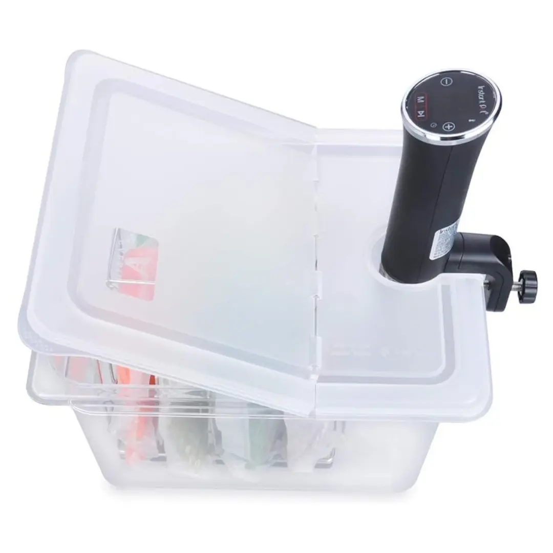 ·Collapsible Lid - The hinge is close to the machine giving enough space to check or refill or remove ingredients any time. Durable hinge is tested for 100,000 uses. No Clamps Required - The lid fits to the container snugly to clamps the sealed bags to stop it from swimming in the bath, no additional clamps required.