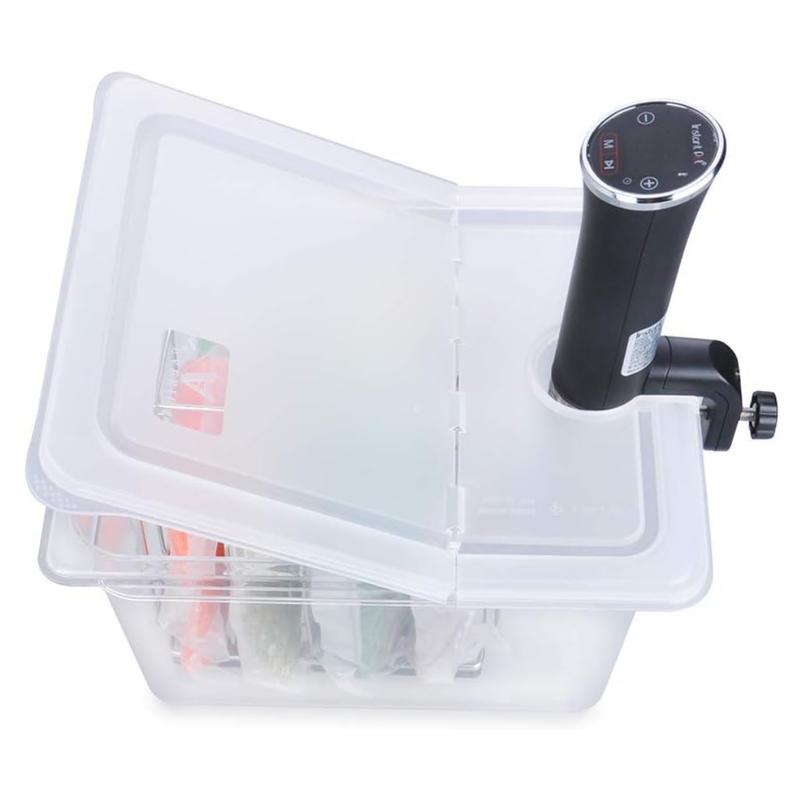 ·Everie Sous Vide Container Bundle for Anova Nano - 12 Quart container EVC-12 and collapsible hinge lid. Compatible with Nano 750w and Mini 850w and AN500-US00 1000w and Anova Pro 3.0 AN525-US00 1100w only. It also matches Instant Pot sou vide cooker though the hole is slightly bigger.