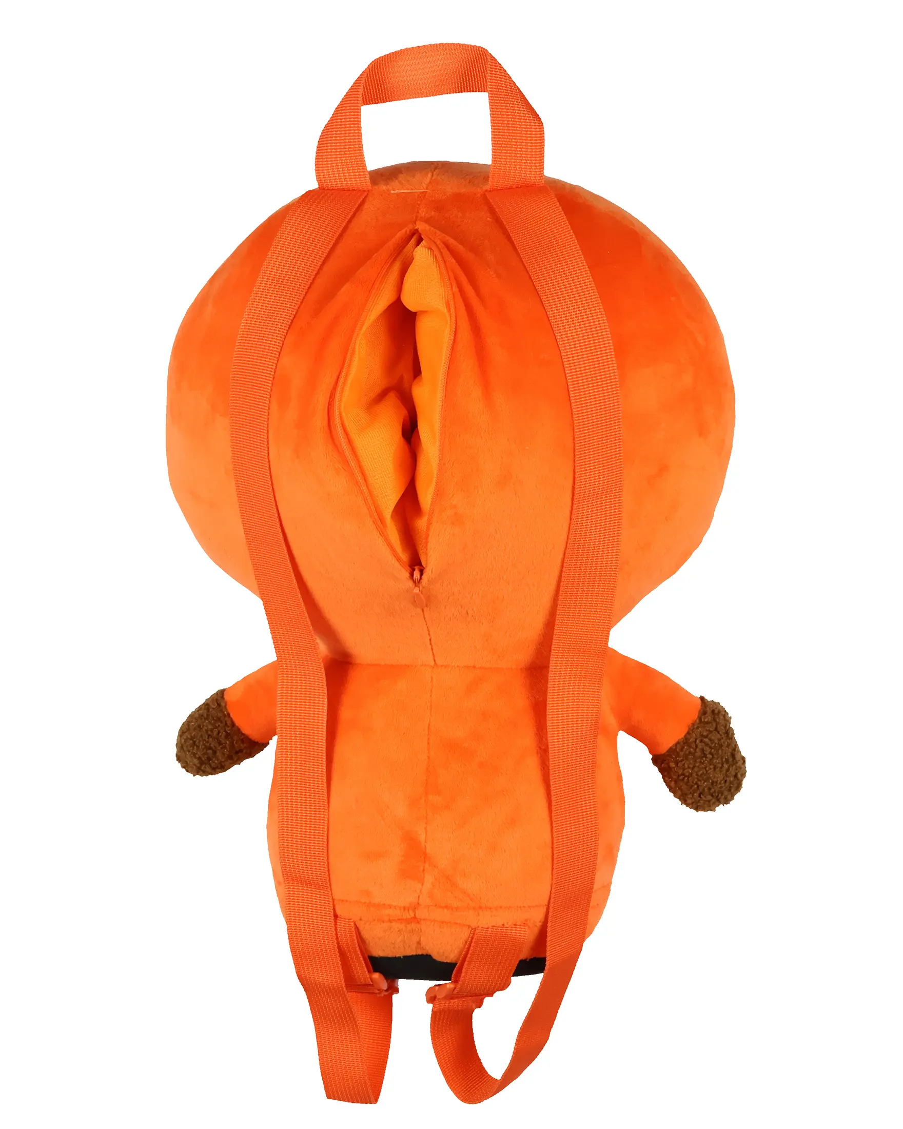 Step into the world of South Park with this 3D Kenny Plush Backpack thatâs more than just a statement pieceâitâs a fully usable backpack alternative built for both character fans and everyday carry. Crafted from soft-touch polyester with a velvety feel, it features a carefully embroidered face and a dimensional silhouette that stays true to Kennyâs iconic look. The 7-inch zippered back pocket provides just enough room for daily basics, while the 21-inch height gives it an eye-catching profile when worn or displayed. Great for teens and adults alike, this plush backpack doubles as both functional storage and a playful nod to South Park fandom. Recommended for ages 13 and older, this backpack measures 21" x 13" x 10" inches Eye-Catching 3D Character Design: Stand out with a full-sized Kenny plush backpack featuring a high-quality embroidered face and a true-to-show 3D design. The signature orange parka, rounded shape, and velvety surface make this a fun and detailed tribute to the classic character. His sleeves and collar are made from a soft fleecy material, adding texture and depth to the overall look. This is great for fans who want a wearable plush that also serves a purpose. Recommended for ages 13 and older, Functional Shape with Hidden Storage: Though playful in appearance, this plush pack is fully usable as a backpack alternative. Measuring 21" in length, 13" in width, and 10" in depth, it has enough space for lightweight items. A discreet 7-inch zipper pocket on the back offers secure storage for small essentials like phones, cards, or snacks. Soft Plush Exterior with Quality Embroidery: This Kenny-themed plush bag is made from 100% polyester and offers a soft, velvety touch. The material is lightweight, smooth, and flexible enough for comfortable shoulder wear. Embroidered facial features give it a polished, lasting finish that wonât peel or crack over time. Easy-Care & Everyday Use: Designed for light daily use, this novelty backpack can be spot cleaned using a damp cloth or wipeâno machine washing necessary. The zipper design and compact storage pocket make it an excellent option for conventions, theme parks, or casual day trips. Full-Size Construction with Structured Build: Unlike mini novelty bags, this Kenny-themed backpack is designed with full dimensions for better presence and usability. Measuring 21 inches tall, it holds its upright shape well when placed on a surface, which gives it a display-worthy look when not worn. The structured design helps maintain the 3D figureâs form while still functioning as a wearable piece.