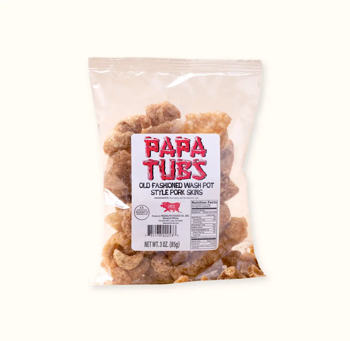 These wash pot cracklins are delicious! They remind me of how my grandmother used to bake pork skin in the oven when I was younger. I never thought a treat I purchased would ever bring me back to a glorious childhood memory! For many years as an adult I’ve purchase pork rinds and cracklins made by other brands and would be less than impressed by their texture nor the bake on them. I never thought I’d find a duplicate nor have Real pork cracklins again. But these old fashioned wash pot cracklins that you sell are cooked to perfection! A perfect crunch, hardly any fat on the back, with just a hint of salt that doesn’t mask the oink taste that I enjoy!! It’s the perfect snack!!