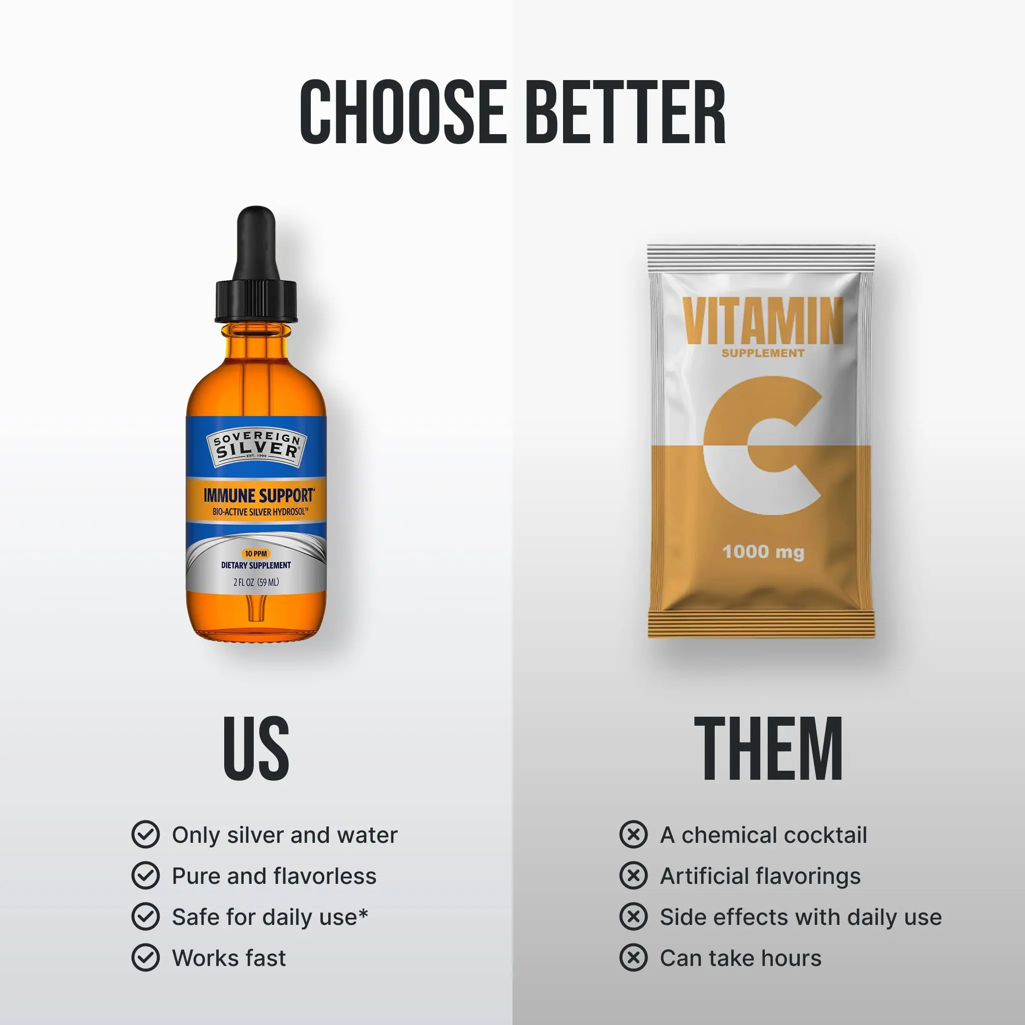 I love Sovereign Silver! It is clear so if I accidentally drop it on my shirt like I do everything else - no problem. It has no taste and only 2 ingredients. Natural immune support. At my age, natural ingredients are becoming more important to me and so is immune support. I definitely recommend