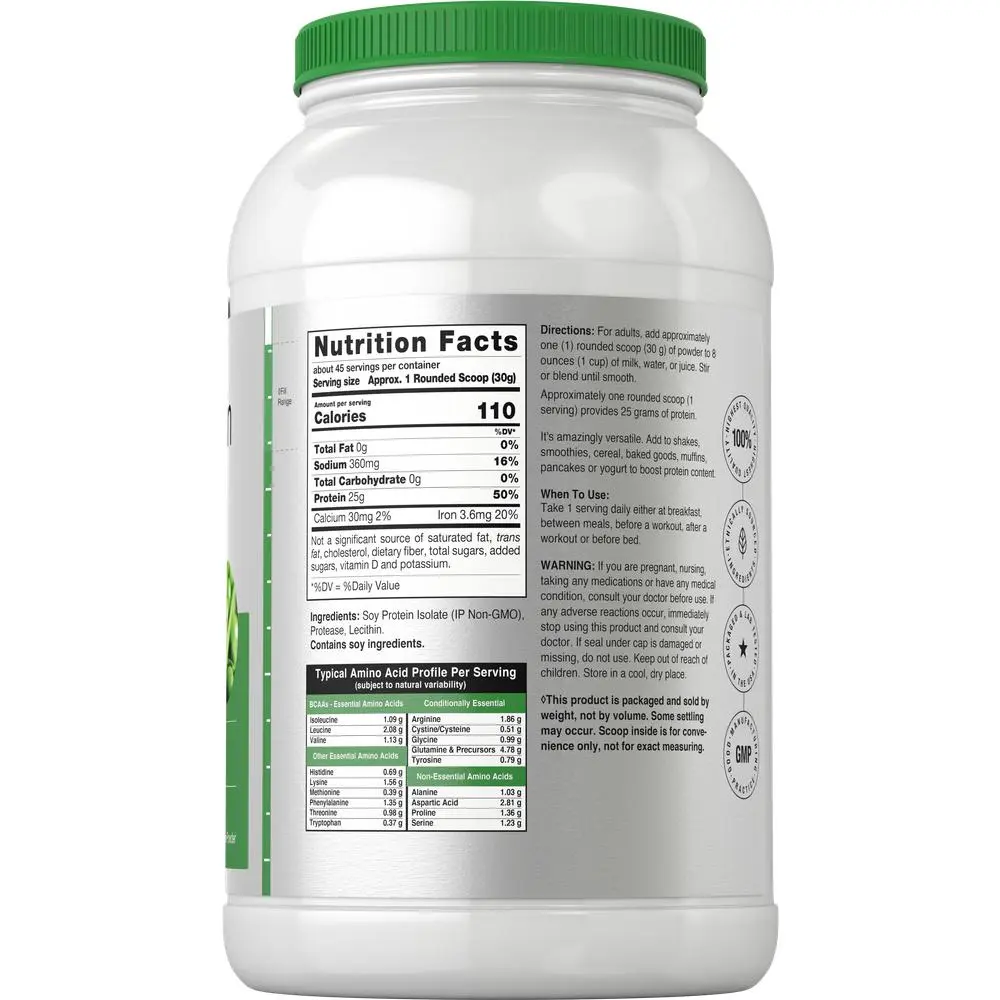 Supplementing with Plant Protein: Not just any plant-based protein will do. You need a high quality protein containing essential amino acids for optimal support. Horbaach's genuine Soy Protein Powder is just that. We've scientifically crafted a complete formula to help you get the most out of your protein supplement! Protein for Vegans: If you're vegetarian or vegan, protein is not easy to come by. Tofu, Lentils and Chia Seeds are just a few protein-rich foods that aid a vegan diet. However, often an additional source of protein is needed to support a nutritious diet. There are various supplements for men and women that now provide strong nutrients for a vegan lifestyle. Horbaach's Soy Protein Isolate Powder: Horbaach's unflavored Soy Protein Isolate is a powerful source of plant-based protein derived from Identity Preserved, non-genetically engineered soybeans. Each serving offers 25g of protein with naturally occurring beneficial isoflavones for superior support. Simply add a scoop of lactose free, unflavored powder to drinks, shakes, smoothies, baking, or yogurt for the ultimate nutritional boost. Get superior value today, with our gluten free 3 lb bulk.