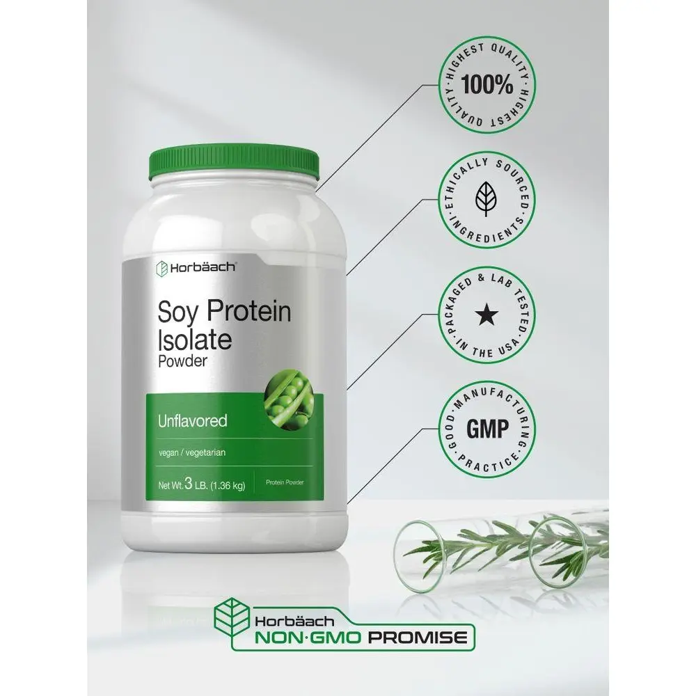 5. Horbäach Soy Protein Isolate Powder | 3lb | Unflavored | Vegan, Non-GMO, Gluten Free