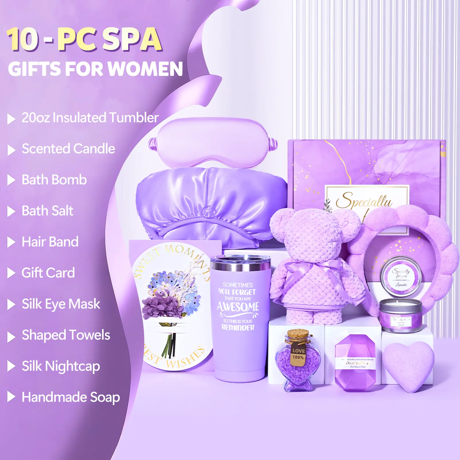 ✨ Relaxing Spa Gift Basket Set, perfect for women. Includes a Stainless Steel Tumbler & Flannel Blanket. This 9/10/12-piece set is ideal for holidays, birthdays, or graduation. Surprise your mom, sister, best friend, or wife with this thoughtful gift. It's a Skin Repair Cosmetic set, enhancing relaxation and care.