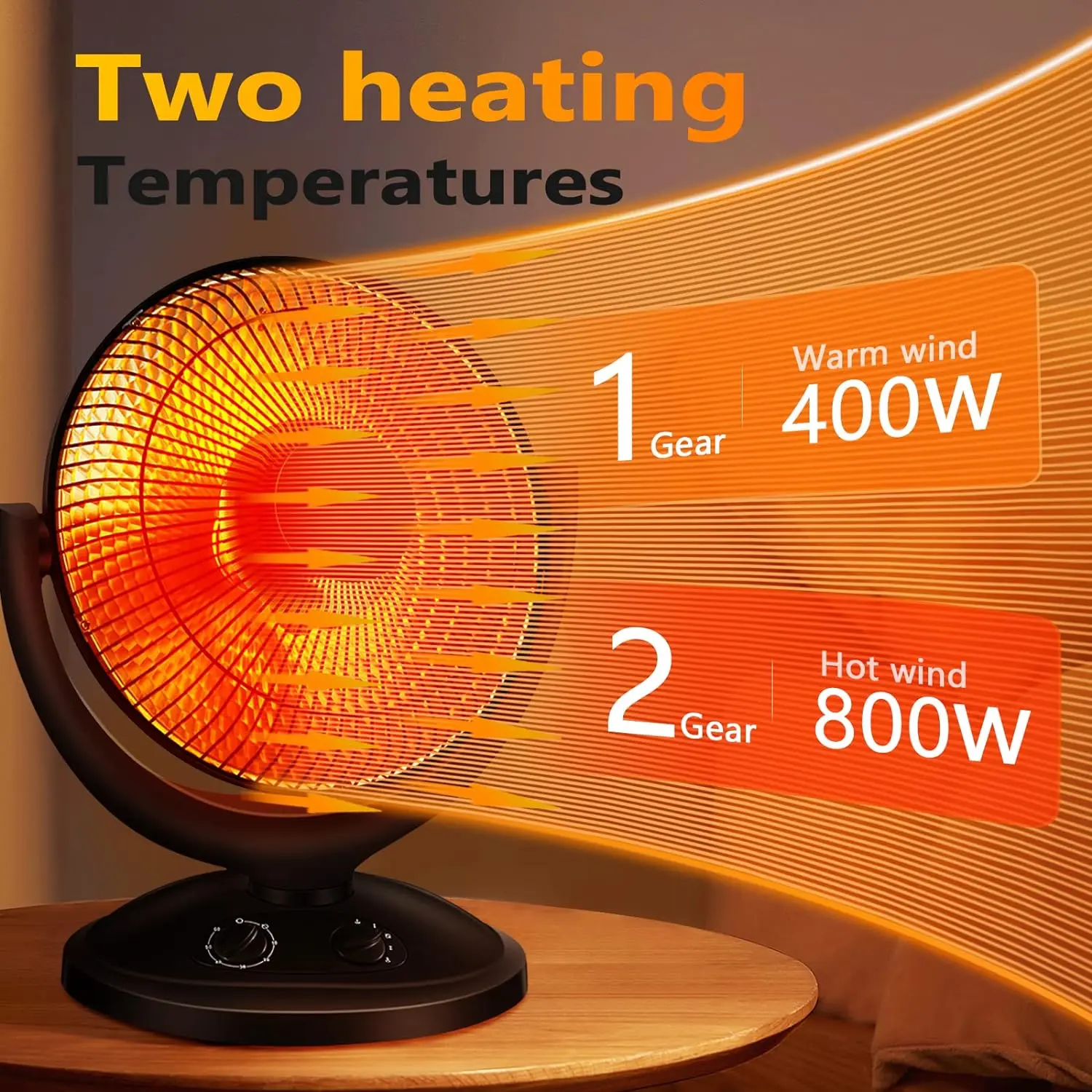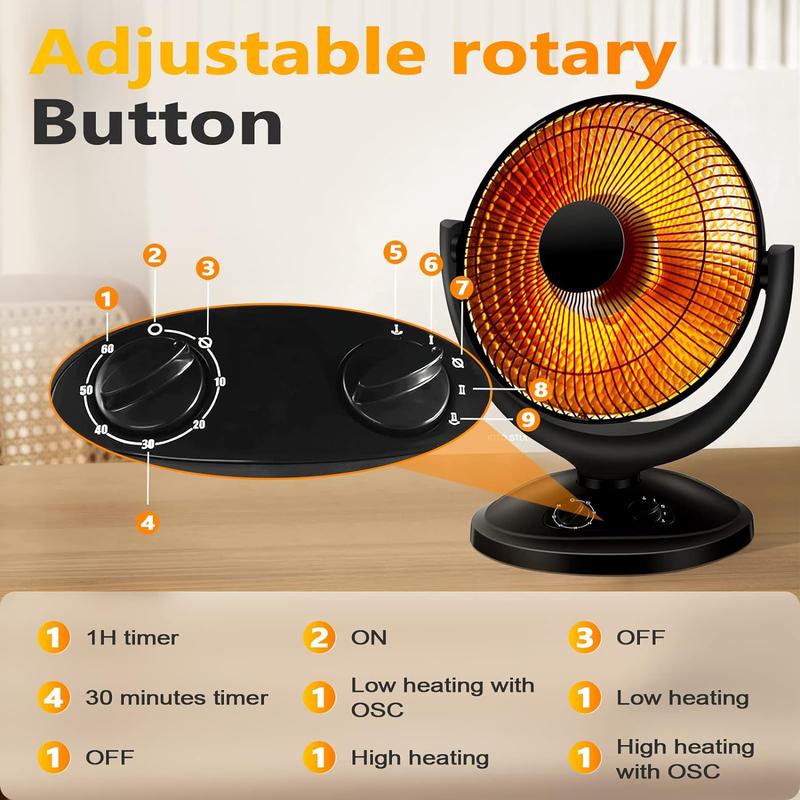Adjustable Heating Function: The Power of this heater can be adjusted, you can customize your own heating needs through the power knob. And the adjustable tilt head allows you to angle the unit more for more targeted warmth turn the power knob to desired heat setting(low power 400w /high power 800w).