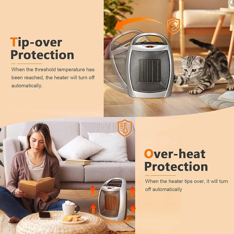 ·Automatically cuts off power when the heater is accidentally overturned or the angle between the heater base and the ground exceeds 45 degrees.