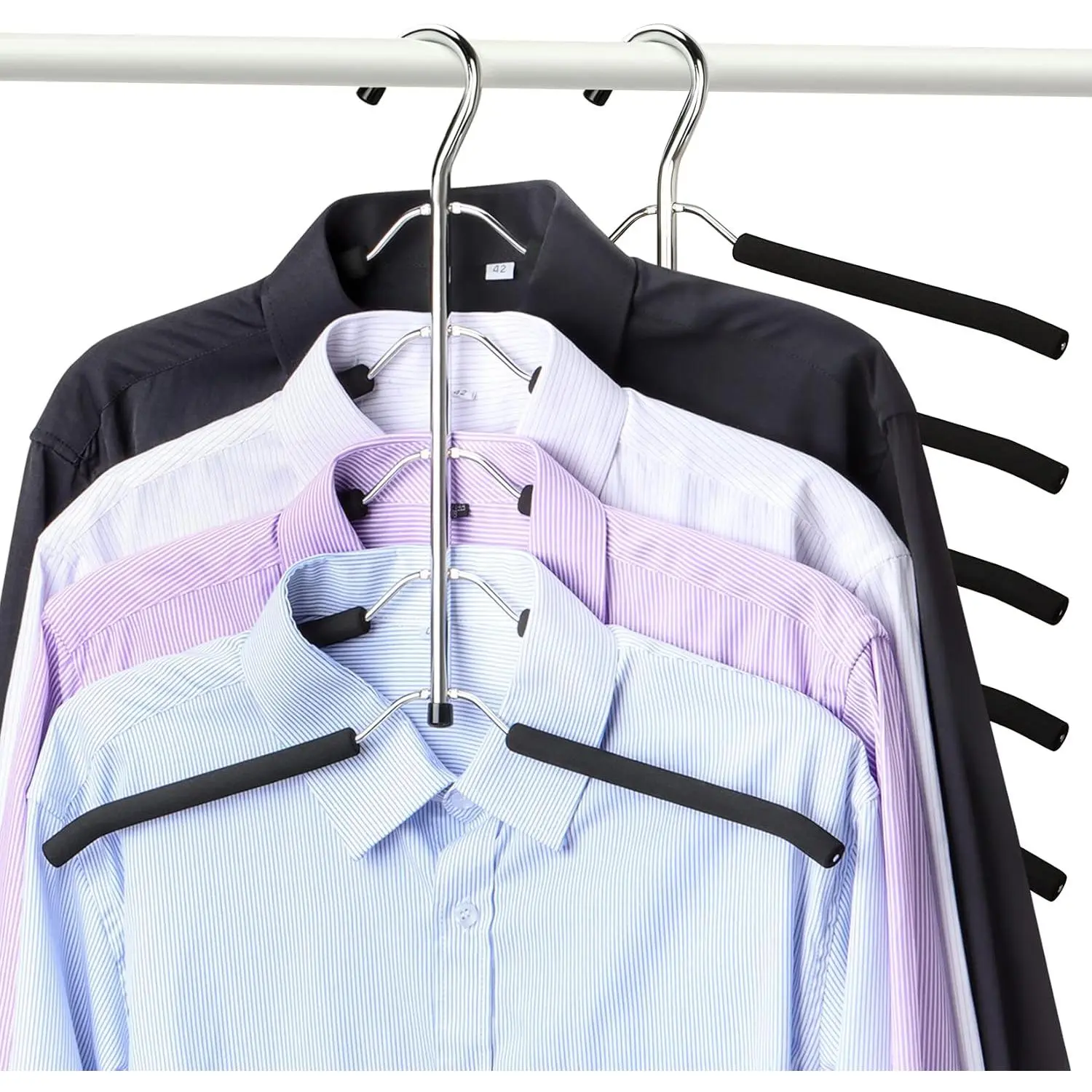 Easy Access and Retrieval: Featuring a multi-layer design, this shirt hanger ensures effortless access to your garments. Locate and grab your clothing quickly and efficiently, avoiding the frustration of a cluttered closet—even when you're pressed for time.