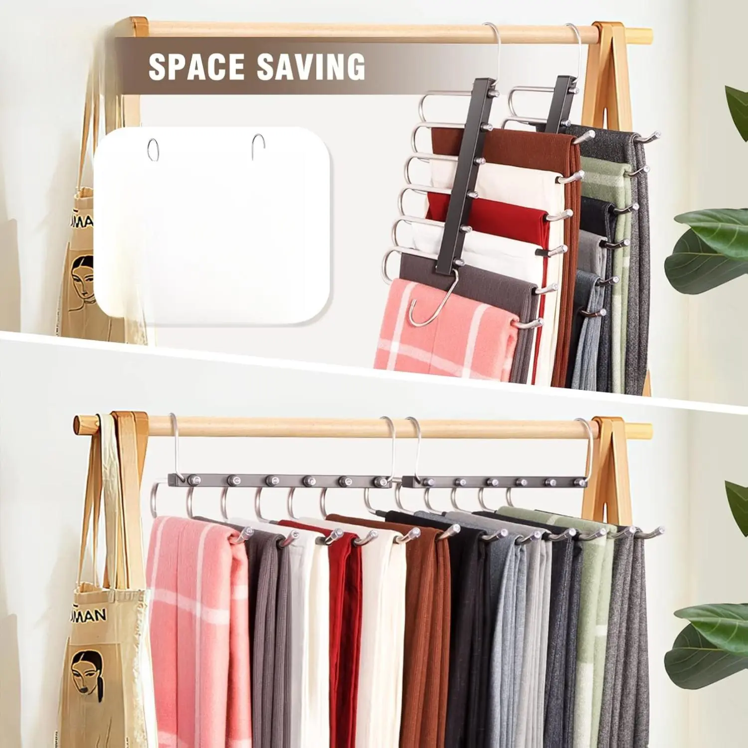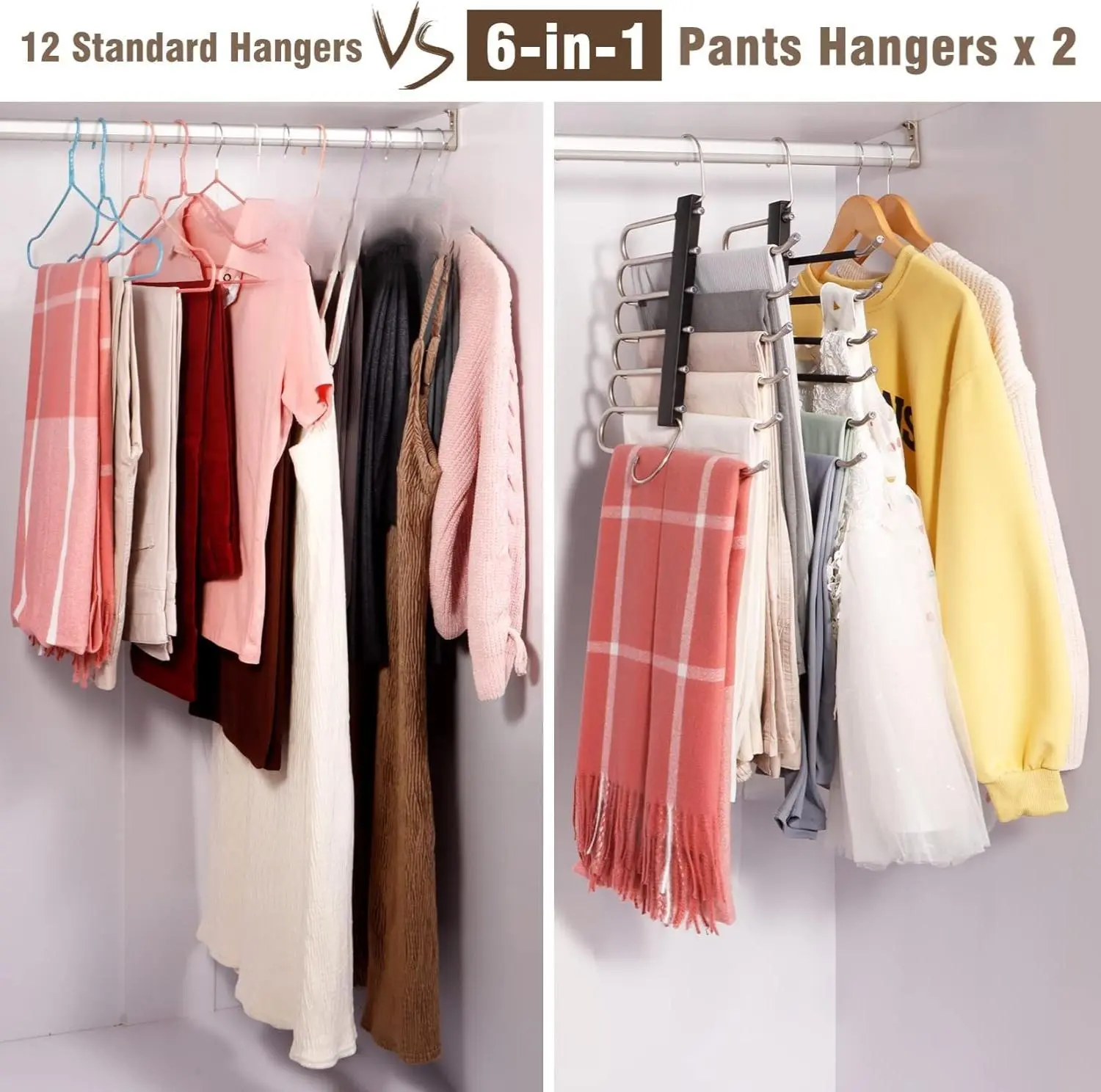 ·Maximize Closet Space : 2 packs of 6-tier pants organizer for closet are designed to save you at least 80% of space in your wardrobe that can hold up to 6 pairs of jeans, scarves, or trousers, maximizing your wardrobe space and keeping it clean and tidy.