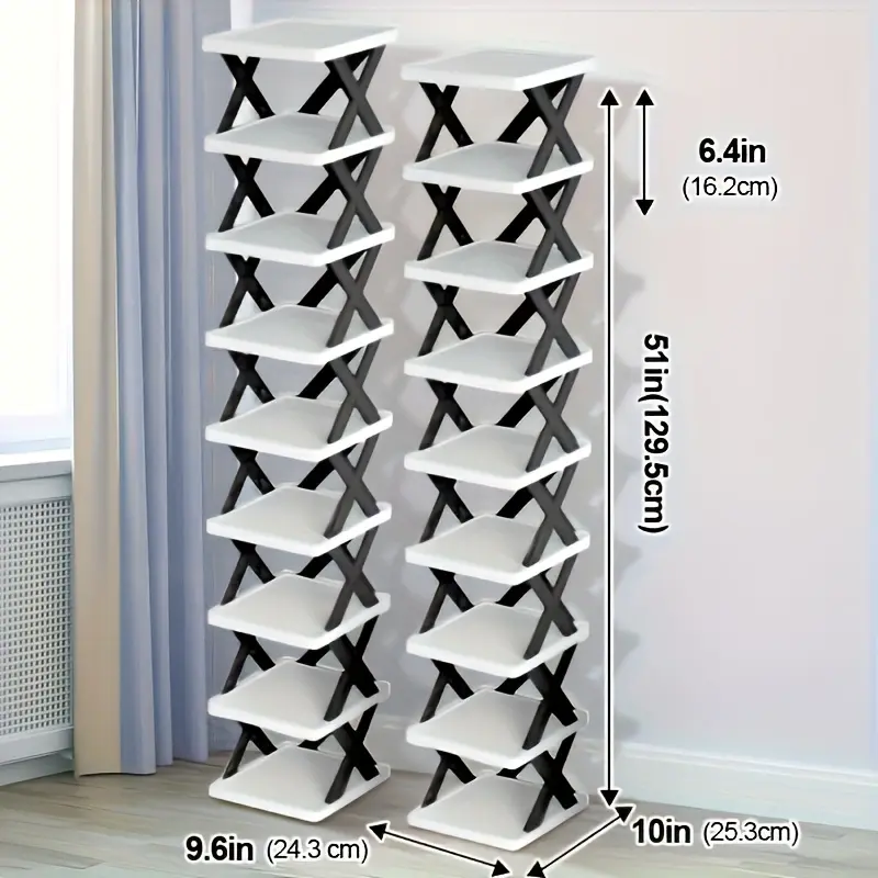 Space-Saving Corner Vertical Shoe Rack Tower, High Narrow Design, Durable Plastic Shelf, Holds 2 Pairs, Ideal for Entryway, Closet, Garage, Living Room, Shoe Shelf Organizer