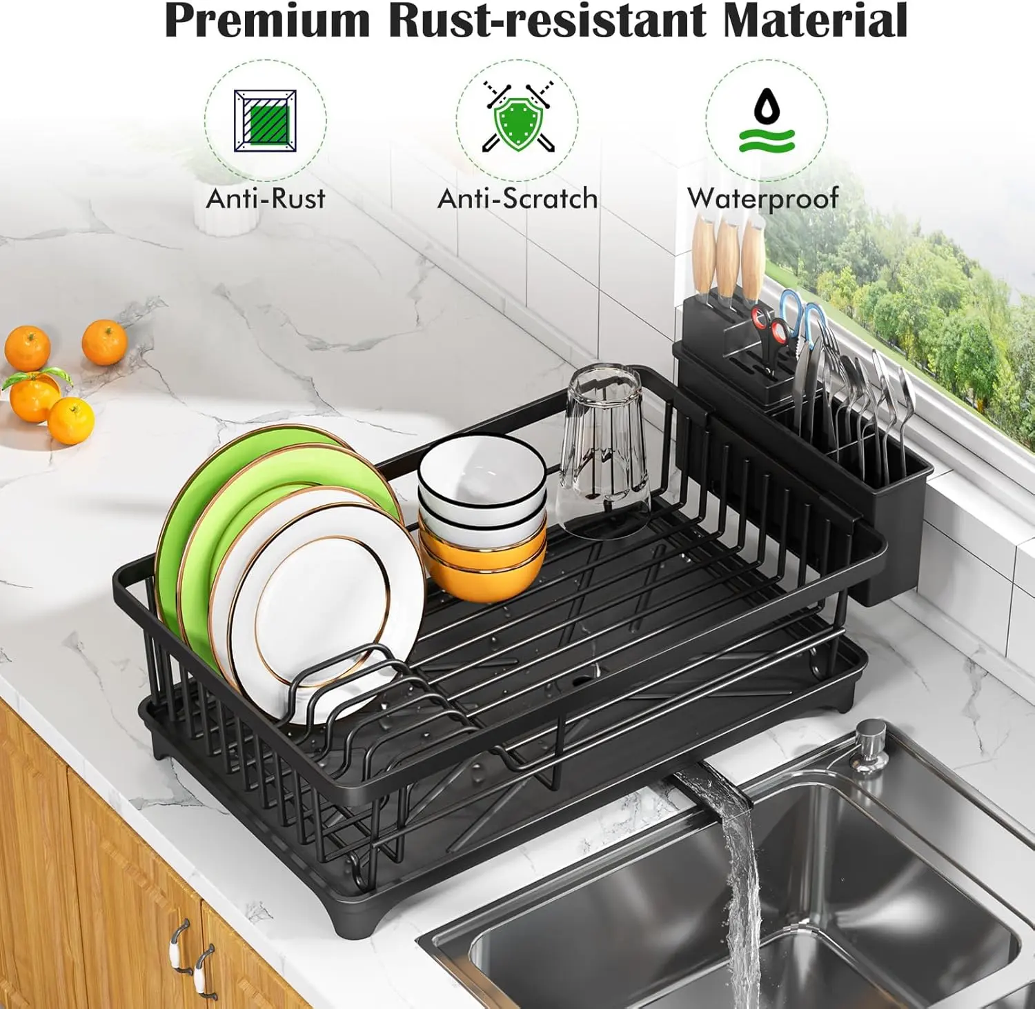 ·Rust-Resistant Material: Made from high-quality, rust-proof, sturdy and stable metal, this dish rack resists rust, corrosion, and wear. Easy to rinse and maintain, the sturdy construction effortlessly holds all your dishes and cups.