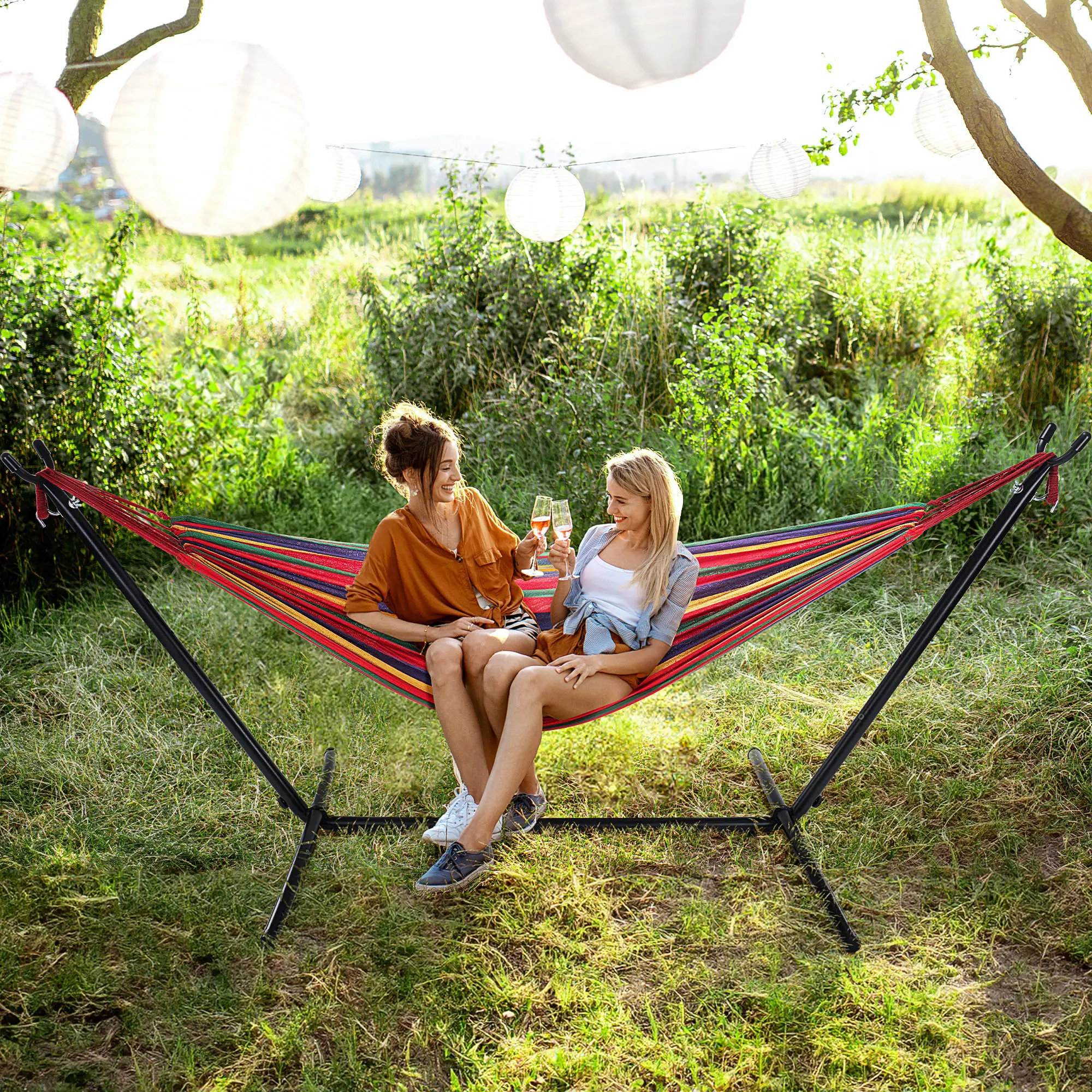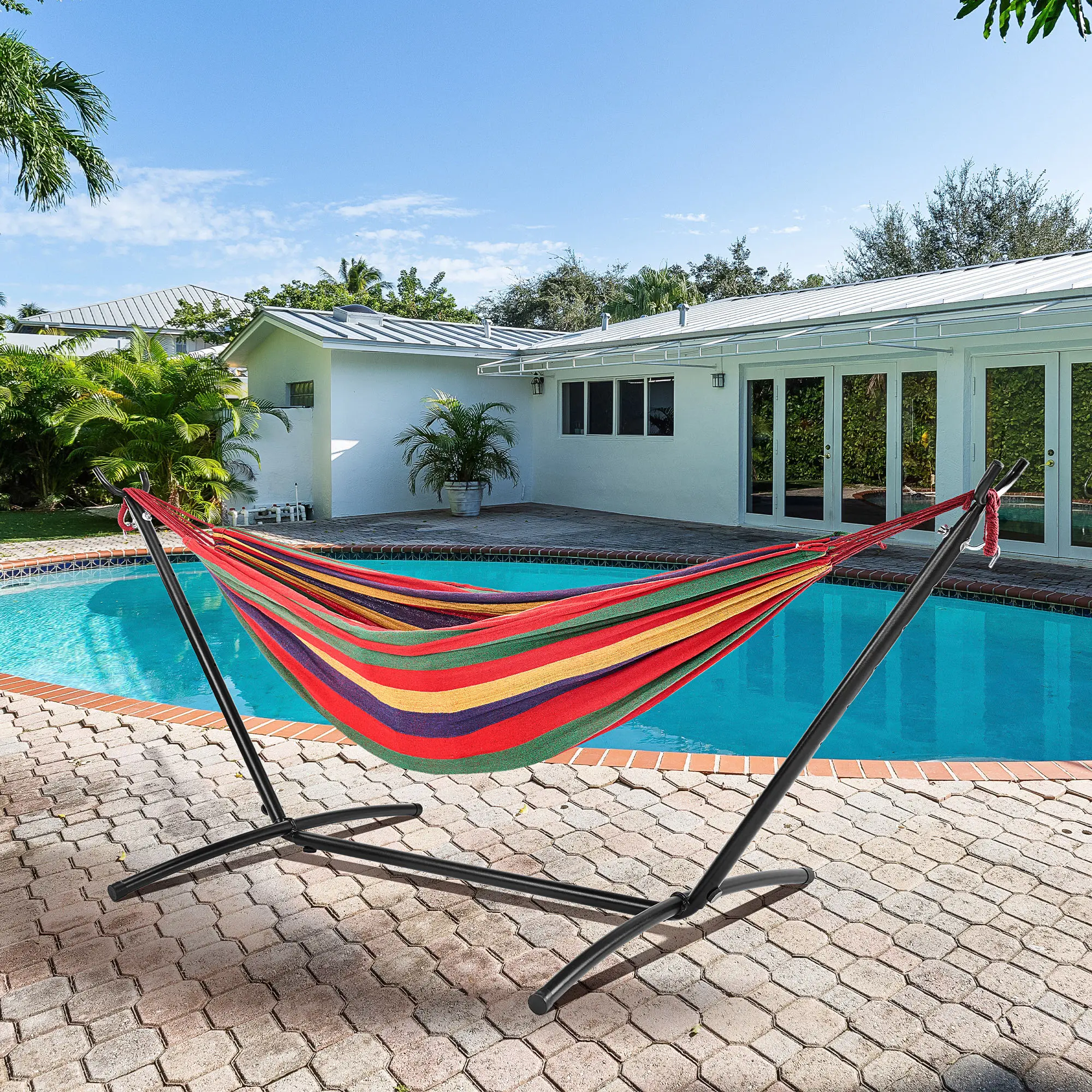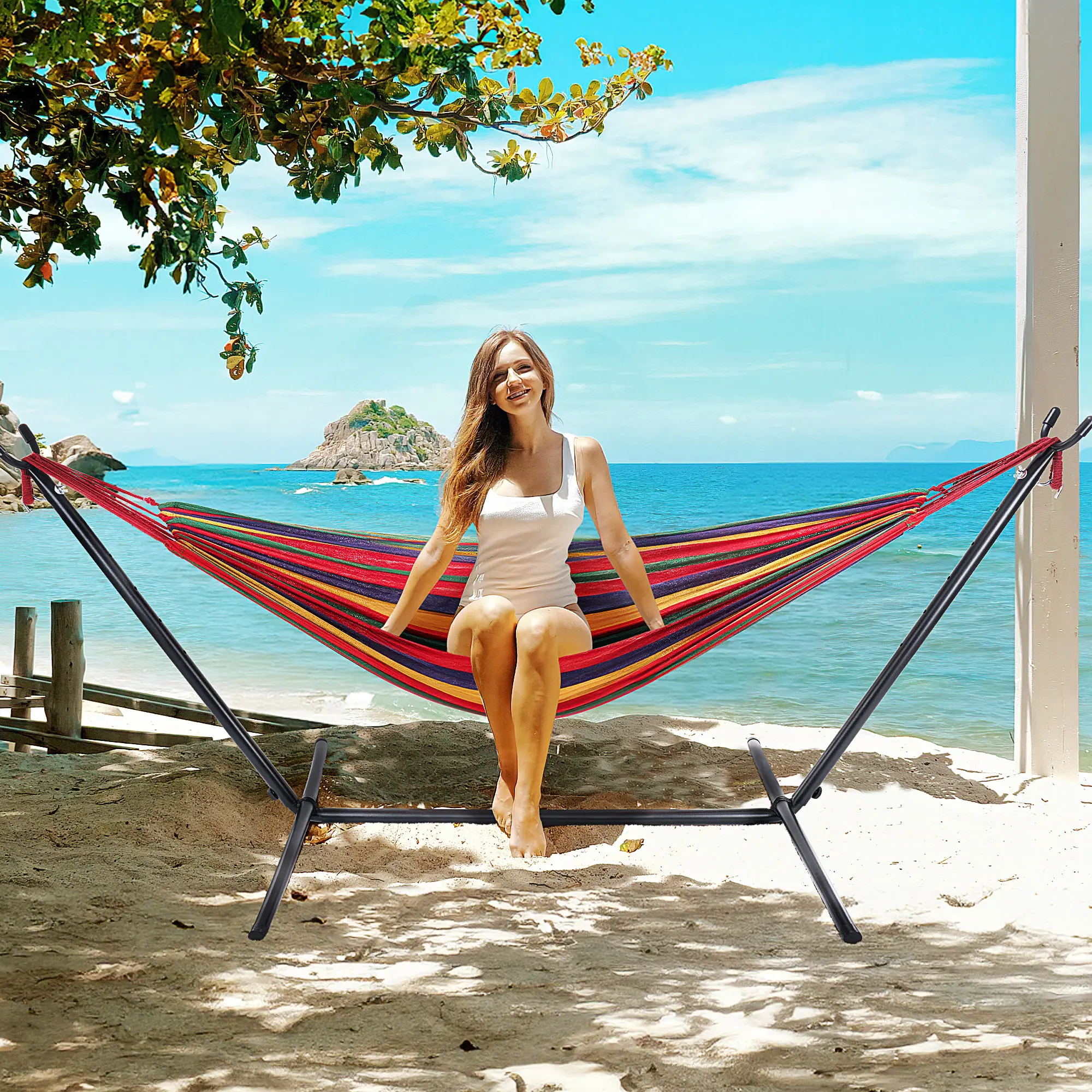 Without a doubt the best purchase for the house in getting ready for the summer. The wife and I have always wanted a hammock but never had the trees or posts to support it. This solves all problems and even delivers a beautiful look to upgrade the esthetics of any backyard