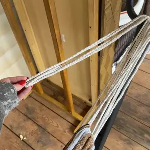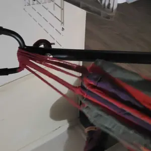 La hamaca quedó muy corta no alcanzo el gancho donde se traba.