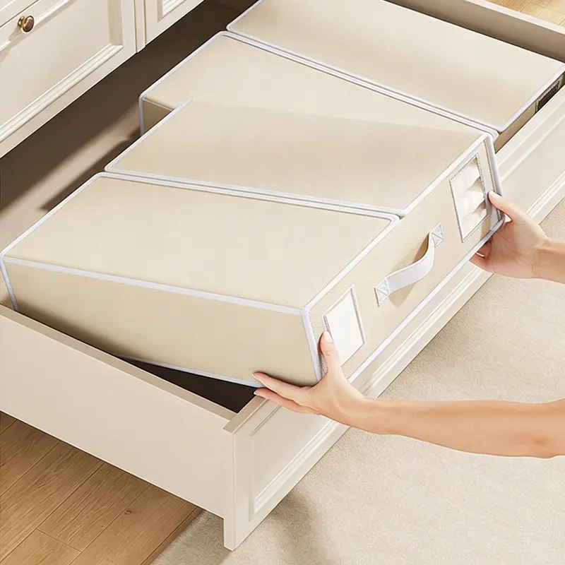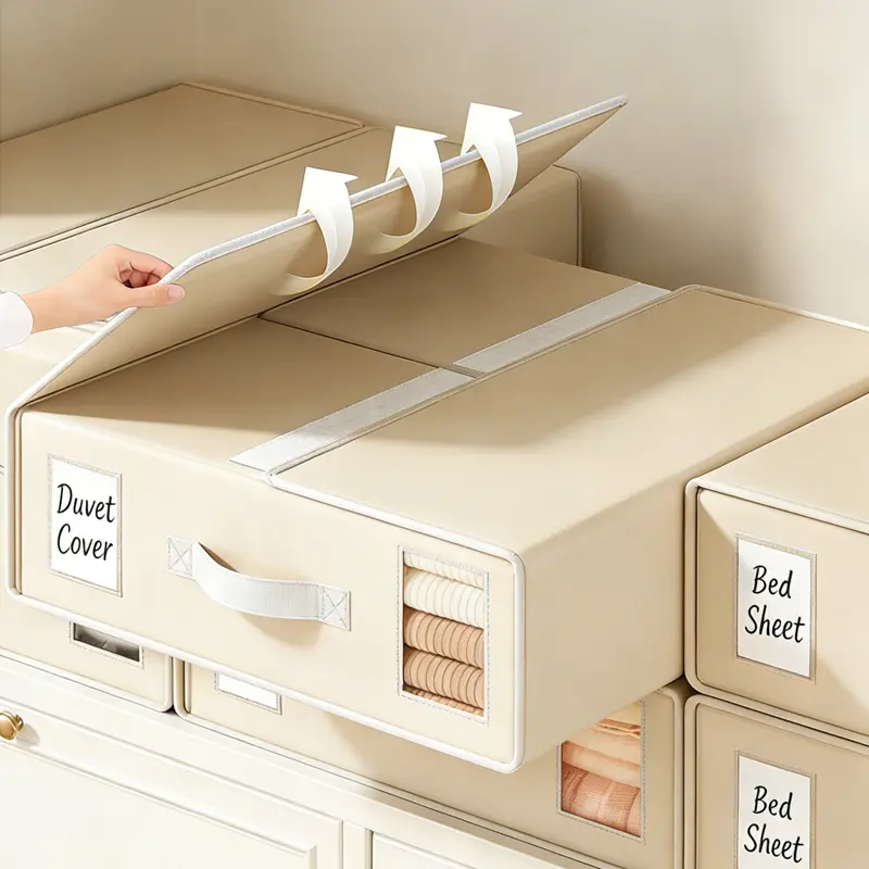 Tired of messy wardrobes and wrinkled bed linens? Our foldable storage box is designed to transform your closet into a tidy, space-saving haven. Perfect for organizing bed sheets, duvets, blankets, and towels, it keeps your bedding neat, dust-free, and easy to access.
