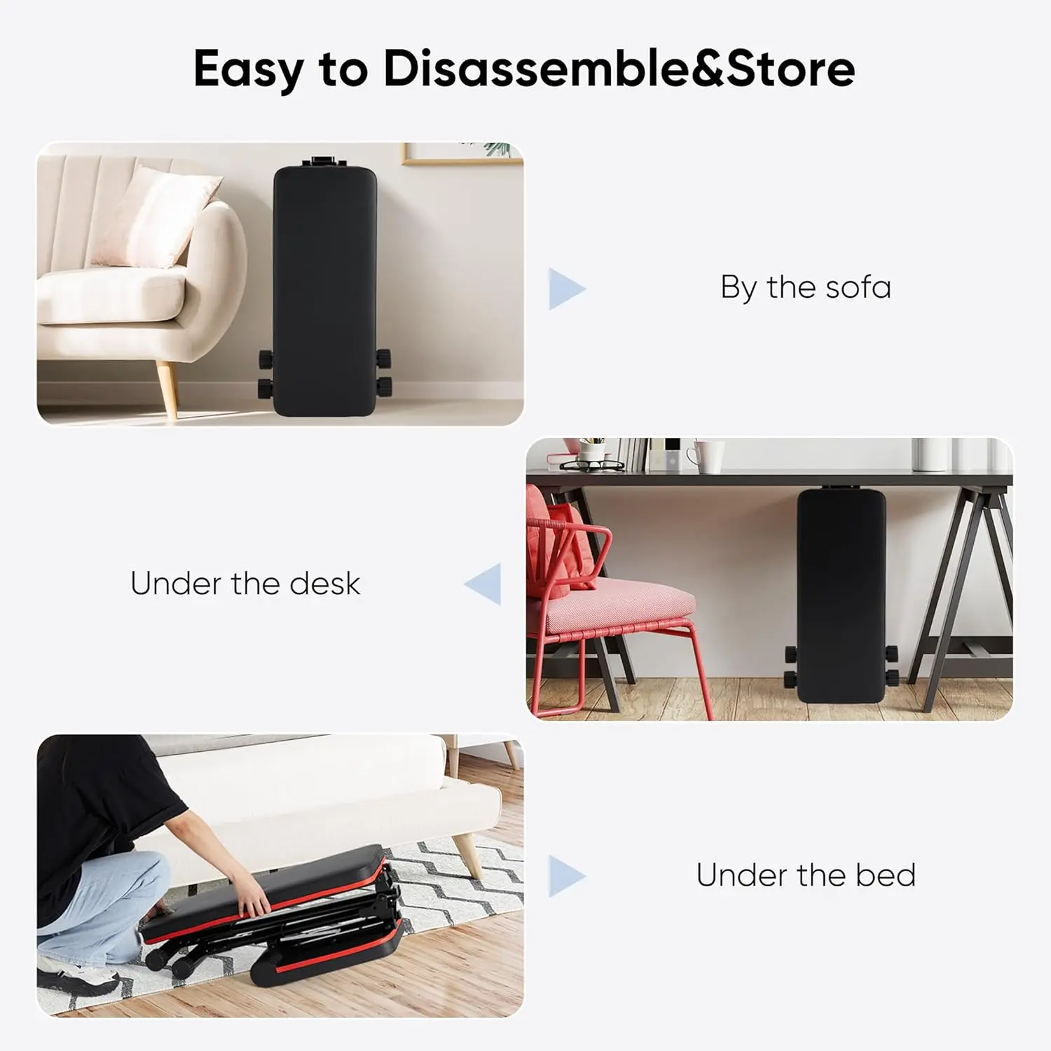 This foldable workout bench adjusts in just 2 seconds, saving 80% of space. Perfect for apartment home gyms, it transforms from a full-sized bench to a compact form effortlessly. Ideal for post-workout storage, it tucks away easily in a corner or beneath your bed. Its lightweight handling ensures easy portability.