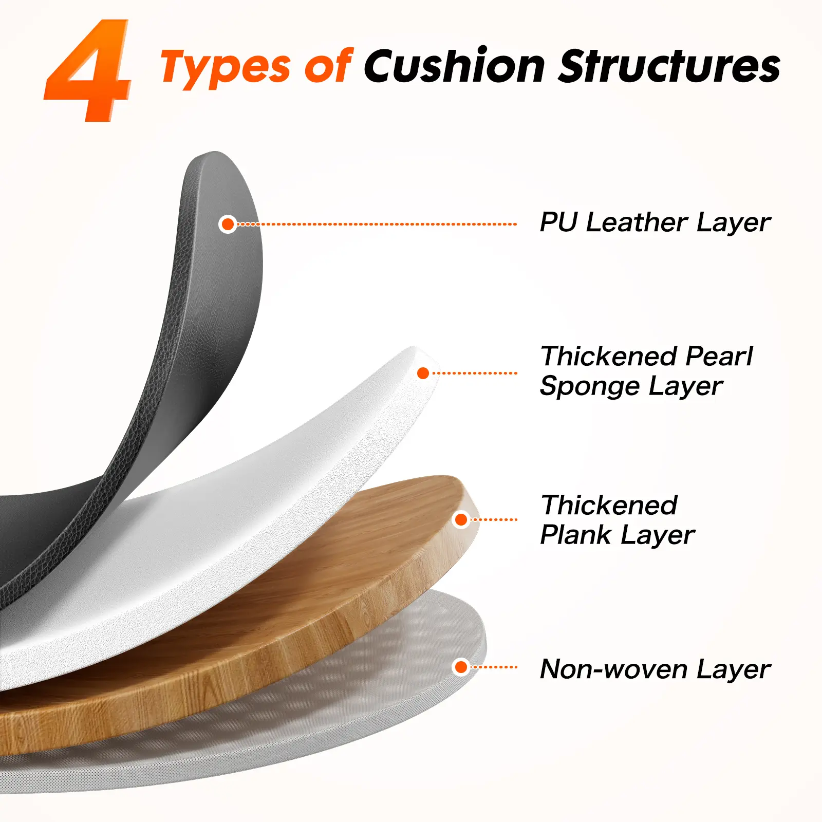 The backrest and seat are made of high-density pearl sponge, composite board, and waterproof PU leather. Double-reinforced stitching ensures longer use. The 21.5" height provides strong support and enhanced stability, ensuring optimal foot grip during workouts.