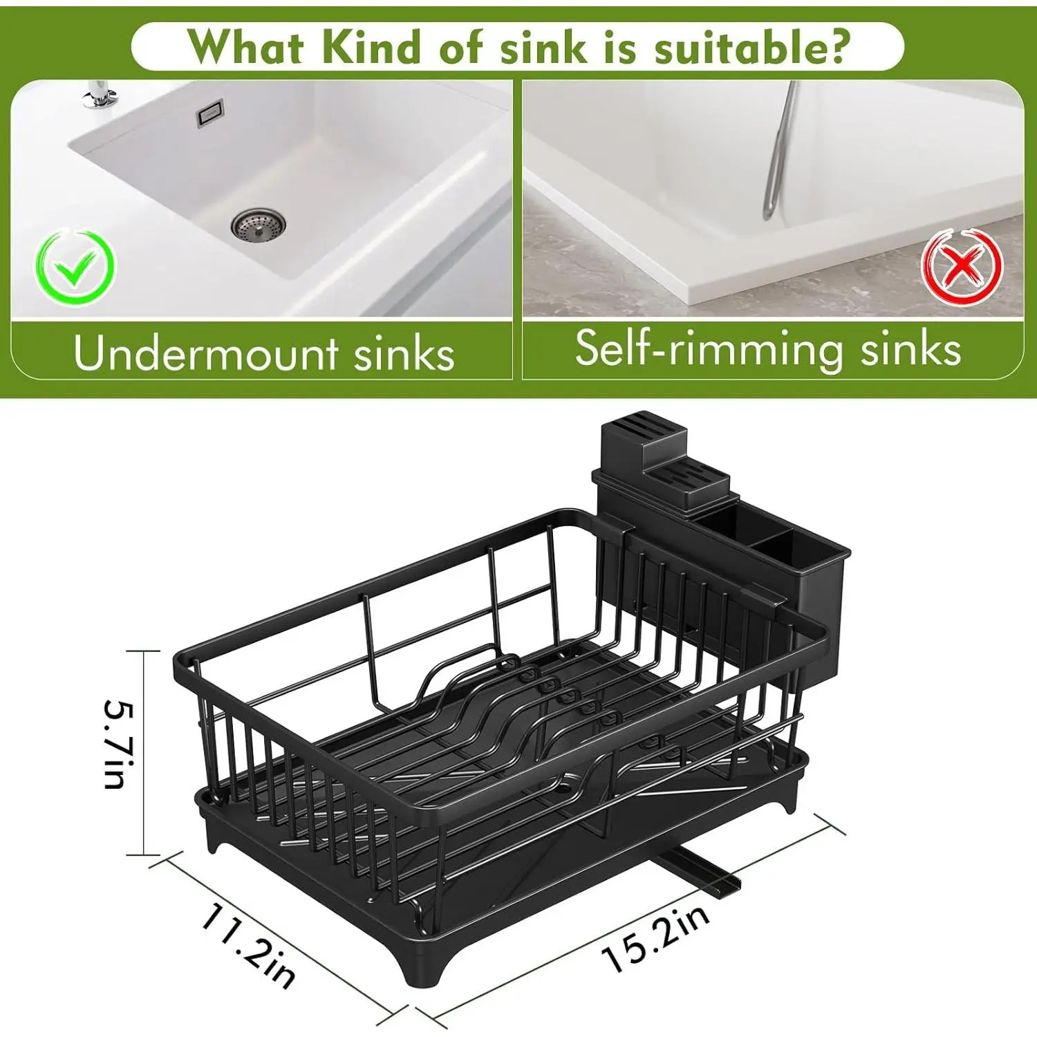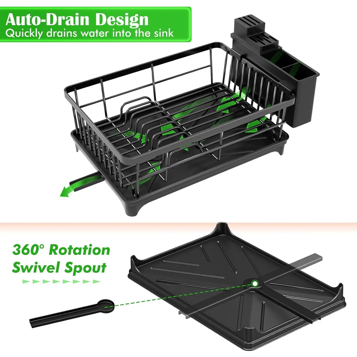 Dish Drying Rack - Space-Saving Small Dish Rack for Kitchen Counter, Rust-Resistant Kitchen Drying Rack, Compact Dish Drainer Organizer with Utensil Holder for Home Kitchen, Black