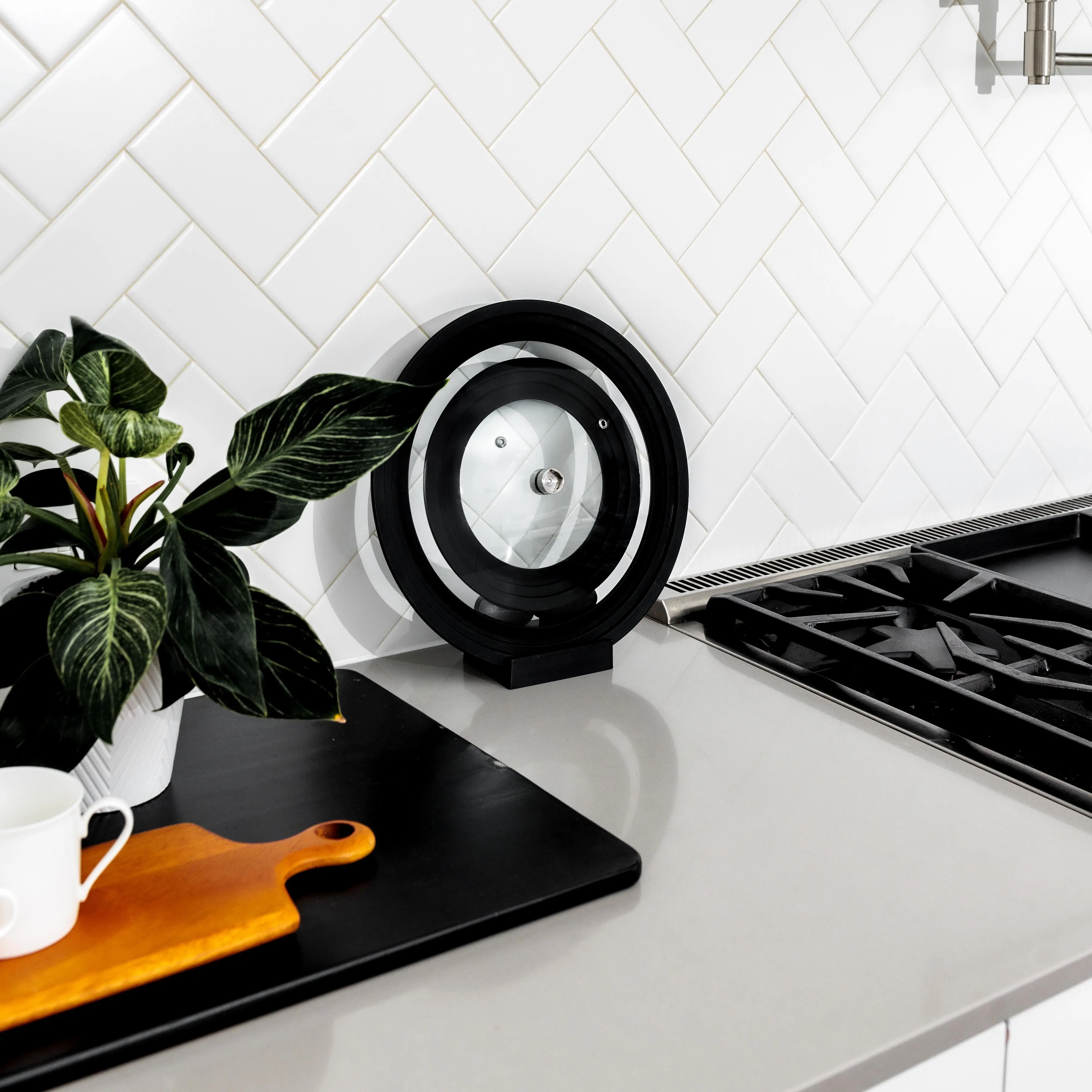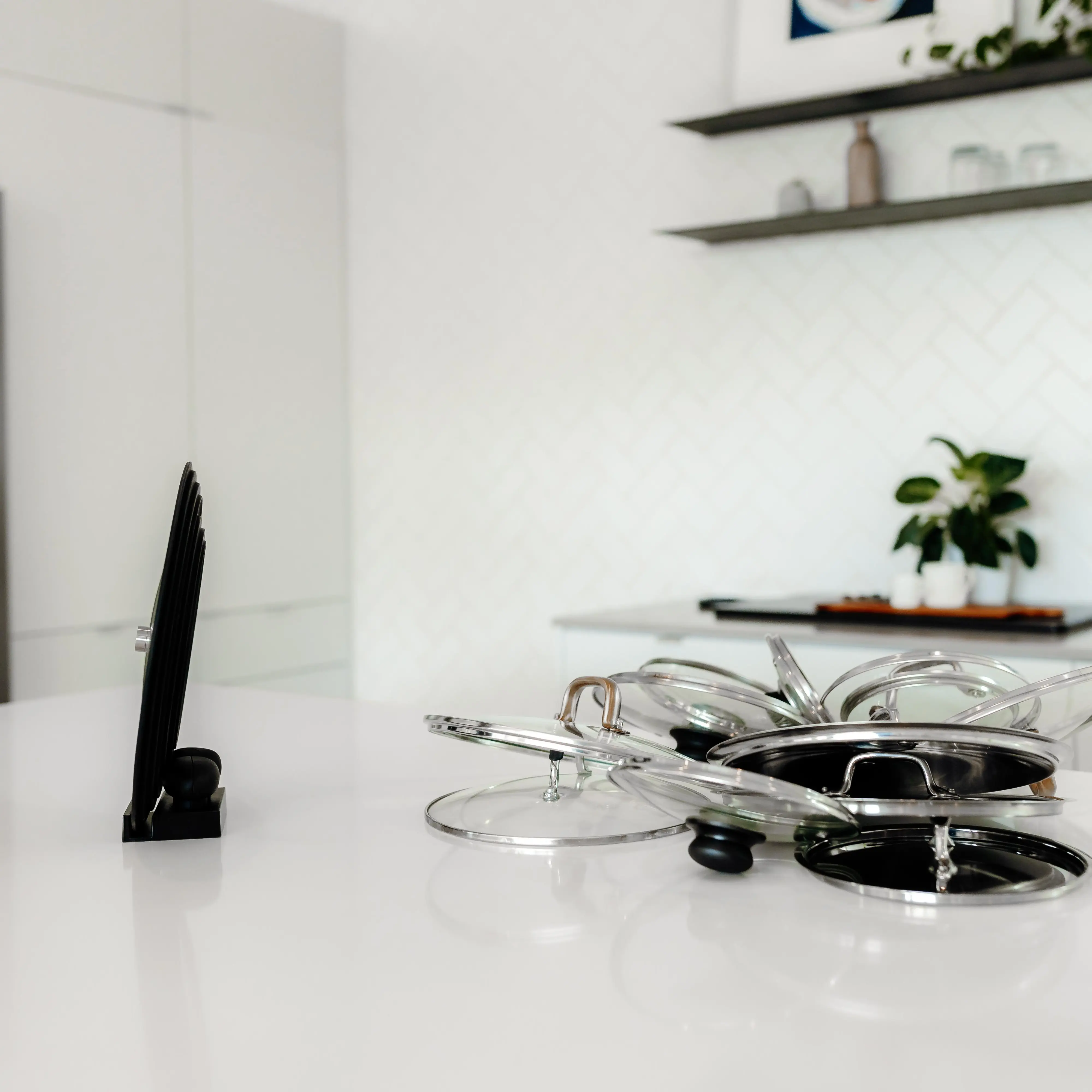 Ditch the wire racks and mismatched lids. Liddy offers a space-saving solution. Store 2 interlocking lids vertically in a slim, beautiful package. Quick release handles allow lids to be stacked, interlocked then stood vertically without our base station.