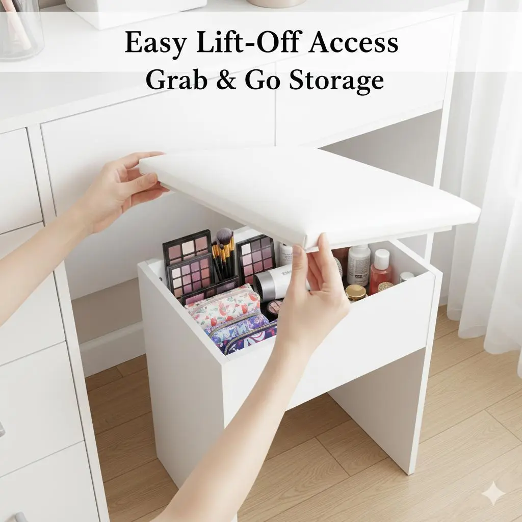 2-in-1 Vanity Stool with Hidden Storage