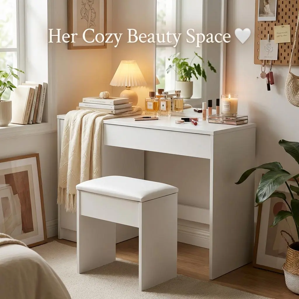 Upgrade your beauty space with a smart 2-in-1 vanity stool that combines comfortable seating and practical storage. Designed for small bedrooms, apartments, and dorm rooms, this compact stool helps keep your space tidy while adding a clean modern look.