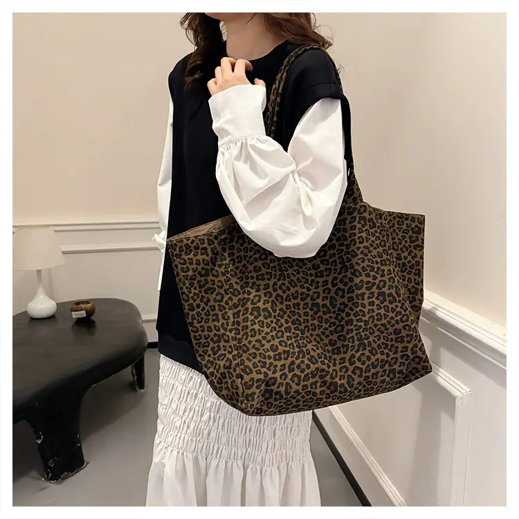 2026 Spacious Reversible Tote Bag, with Eye-Catching Leopard Print and Minimalist Solid Side, Perfect for Office, Errands, and Weekend Getaways