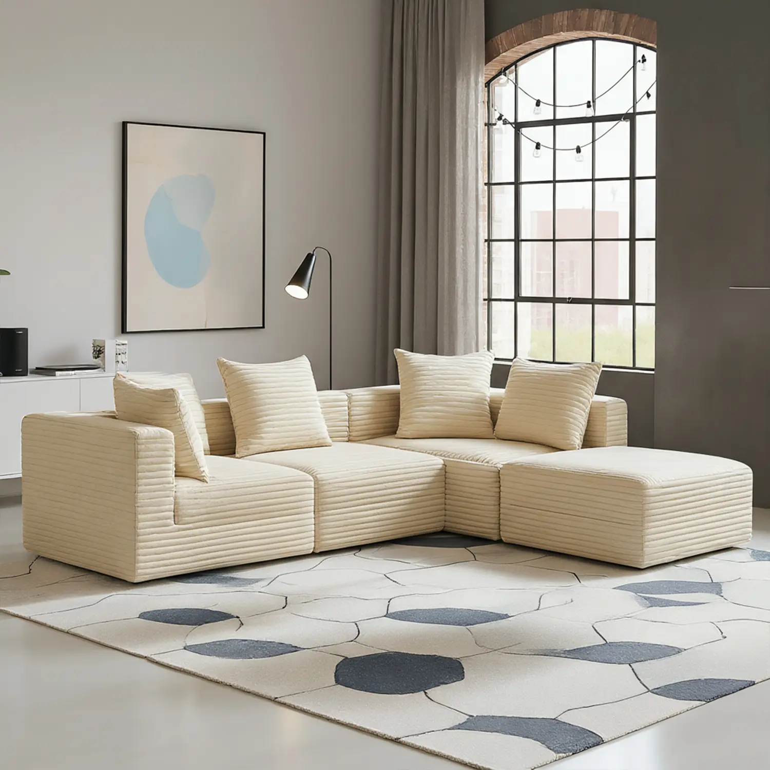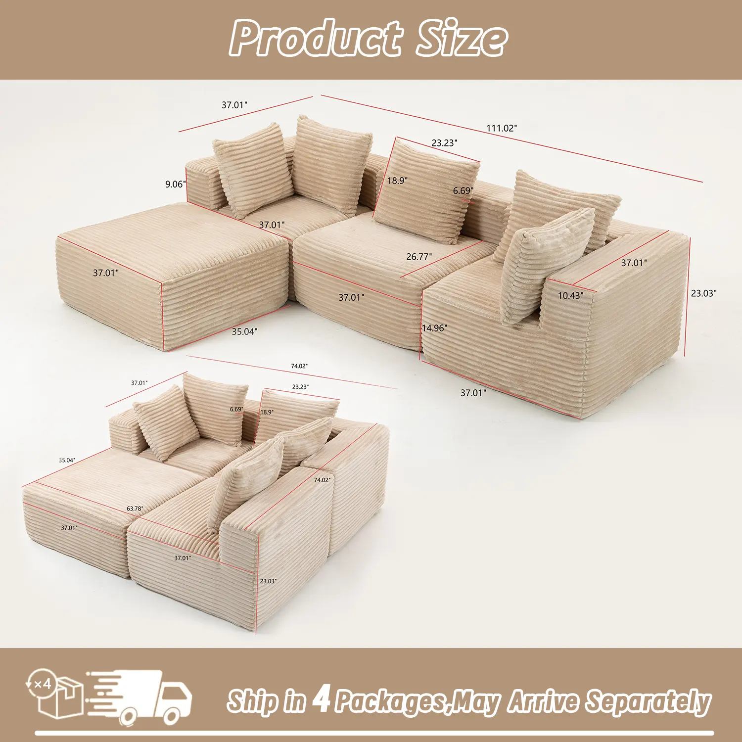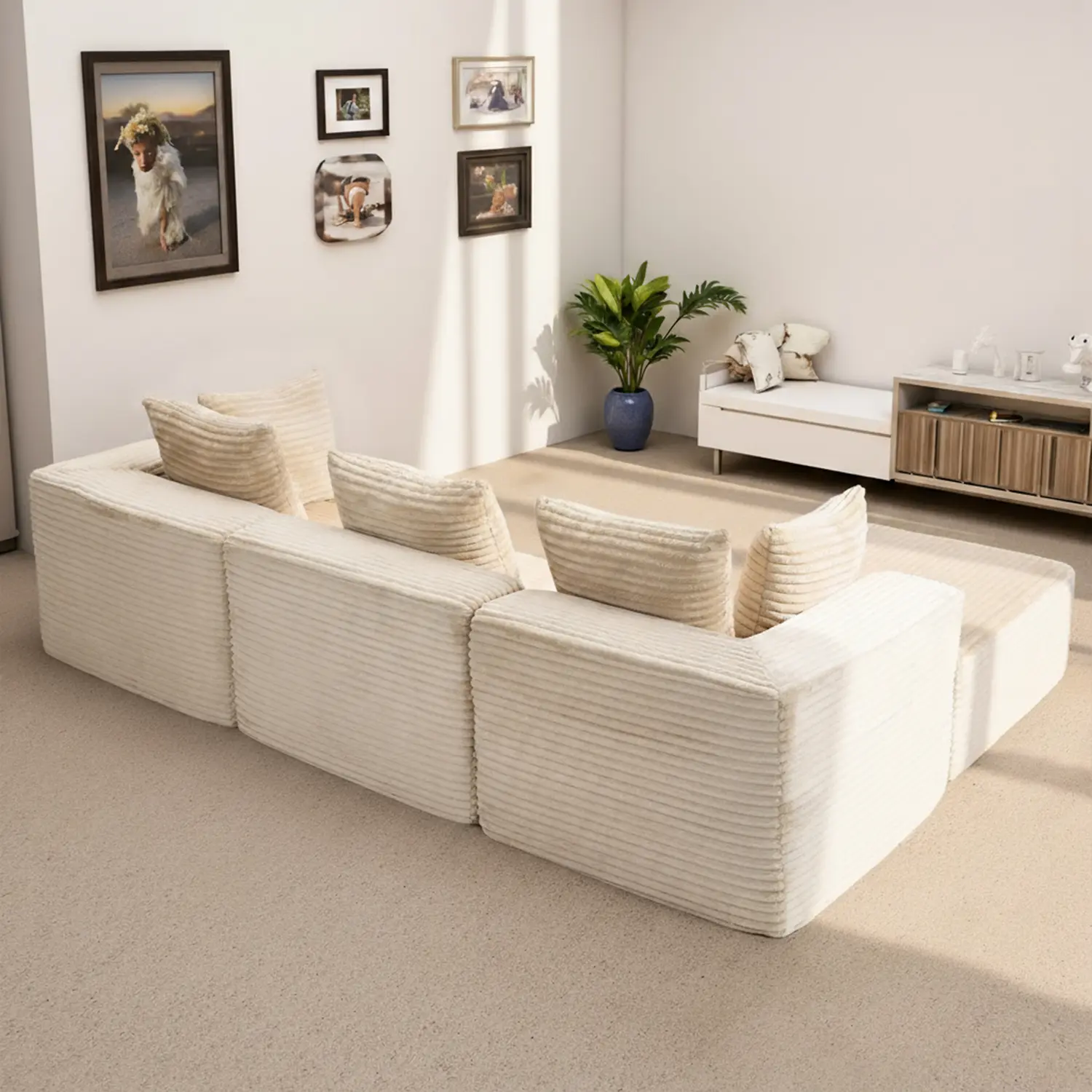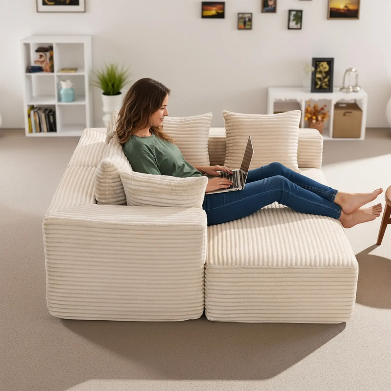 【Flexible Modular Configuration】 Featuring a fully modular structure, this sofa lets you rearrange or reconfigure each section according to your space size and personal preference. Whether you prefer an L-shape, straight-line layout, or even a sofa bed setup, this flexibility delivers ultimate customization to suit any living room arrangement.