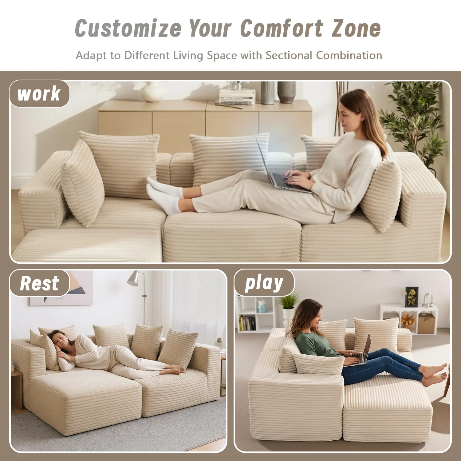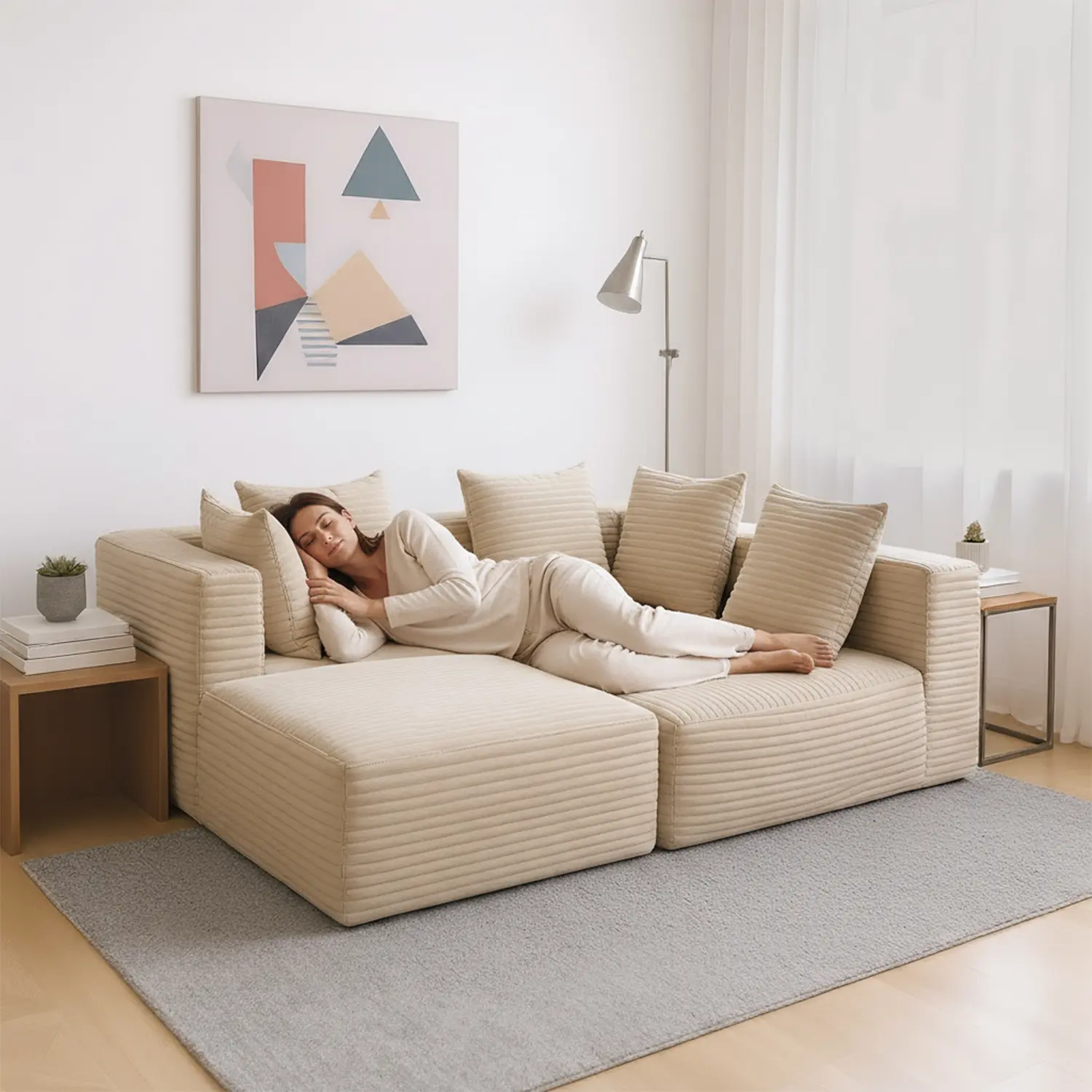 【Luxurious Corduroy Fabric】 Upholstered in soft yet durable corduroy fabric, this lounge sofa blends stylish aesthetics with a plush, inviting feel. The fabric’s vertical ribbed texture adds a sophisticated, timeless charm while creating a tactile, cozy surface—one that is gentle to the touch and simple to maintain for long-term use.