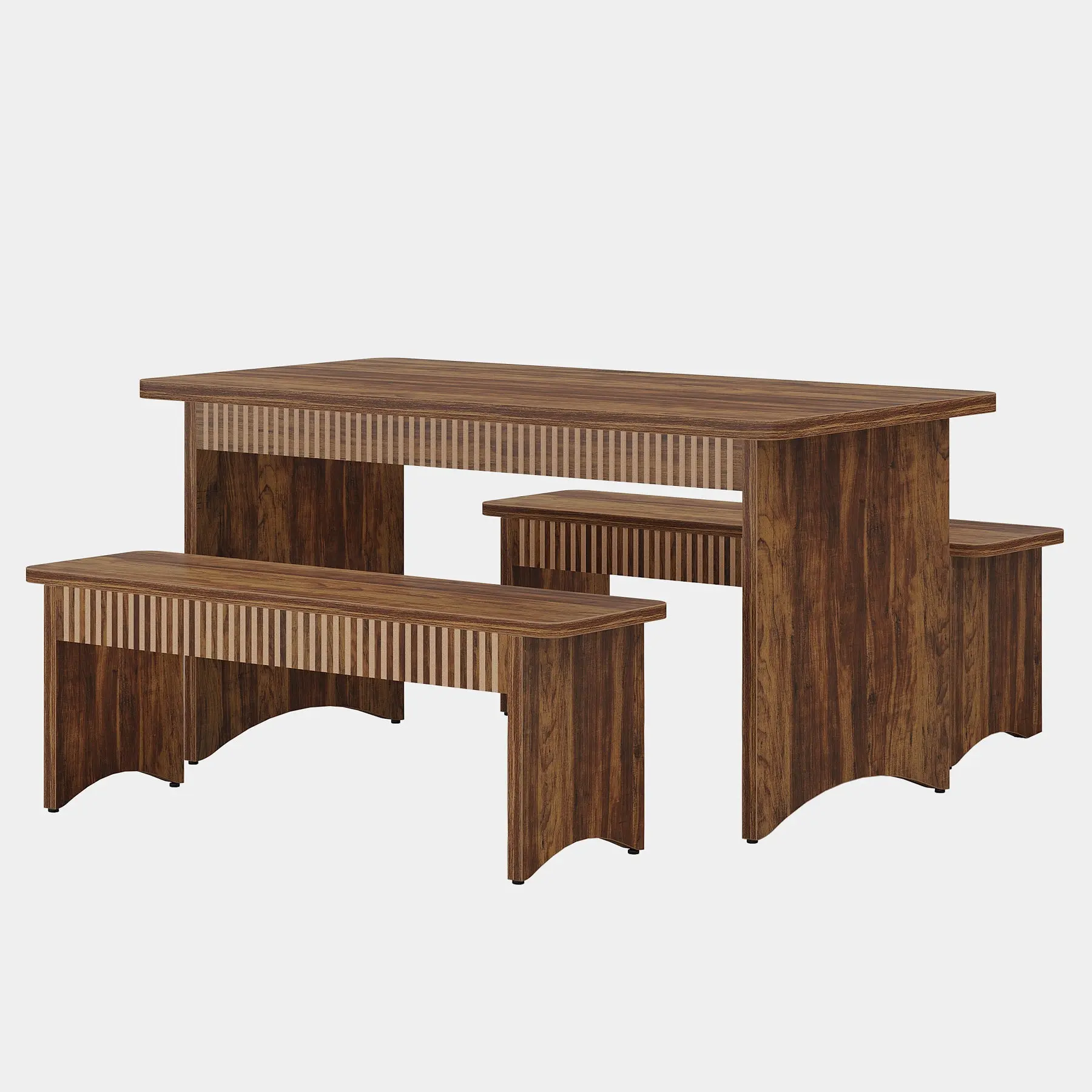 Ā·ćFarmhouse-Inspired Designć Featuring clean lines and a natural wood grain finish, this set brings rustic charm to modern homes. The vertical stripe detailing on the benches adds subtle texture and visual interest, creating a warm, inviting atmosphere in any dining area.