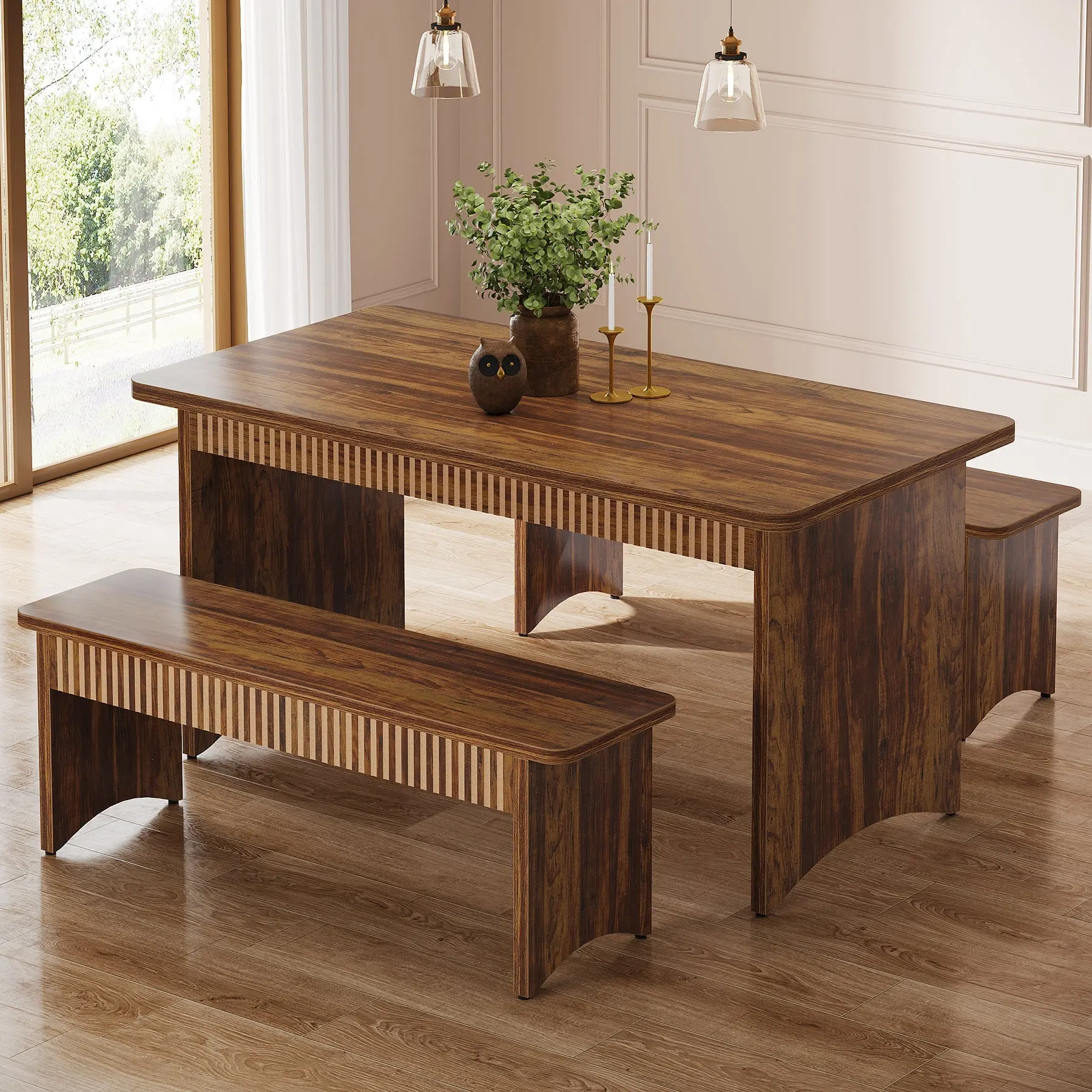 Ā·ć3-Piece Dining Setć This complete dining solution includes a spacious table and two matching benches, comfortably seating 4-6 people. The set is ideal for small families or cozy dining spaces, offering both functionality and style for everyday meals and special gatherings.
