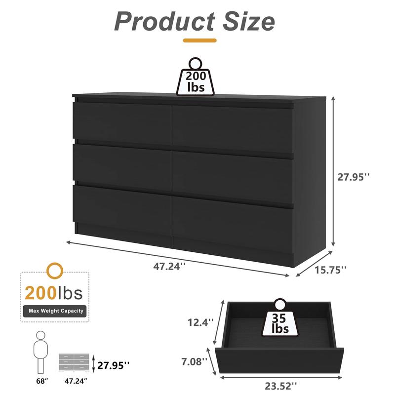 ·【Handcrafted】: This storage cabinet is made of solid wood (MDF/particleboard) and decorative laminates. Dresser6 sliding drawers with vinyl clad sides and backs