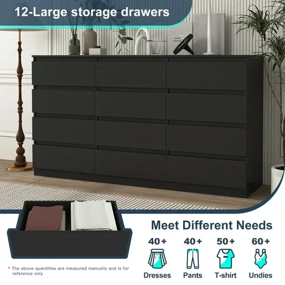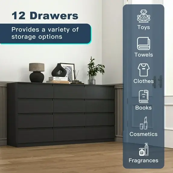 【Spacious Storage】With 12 storage drawers for easy organization, this piece keeps your space neat and tidy. The spacious tabletop offers ample room for displaying favorite photo frames, flowers, or decorative accents.