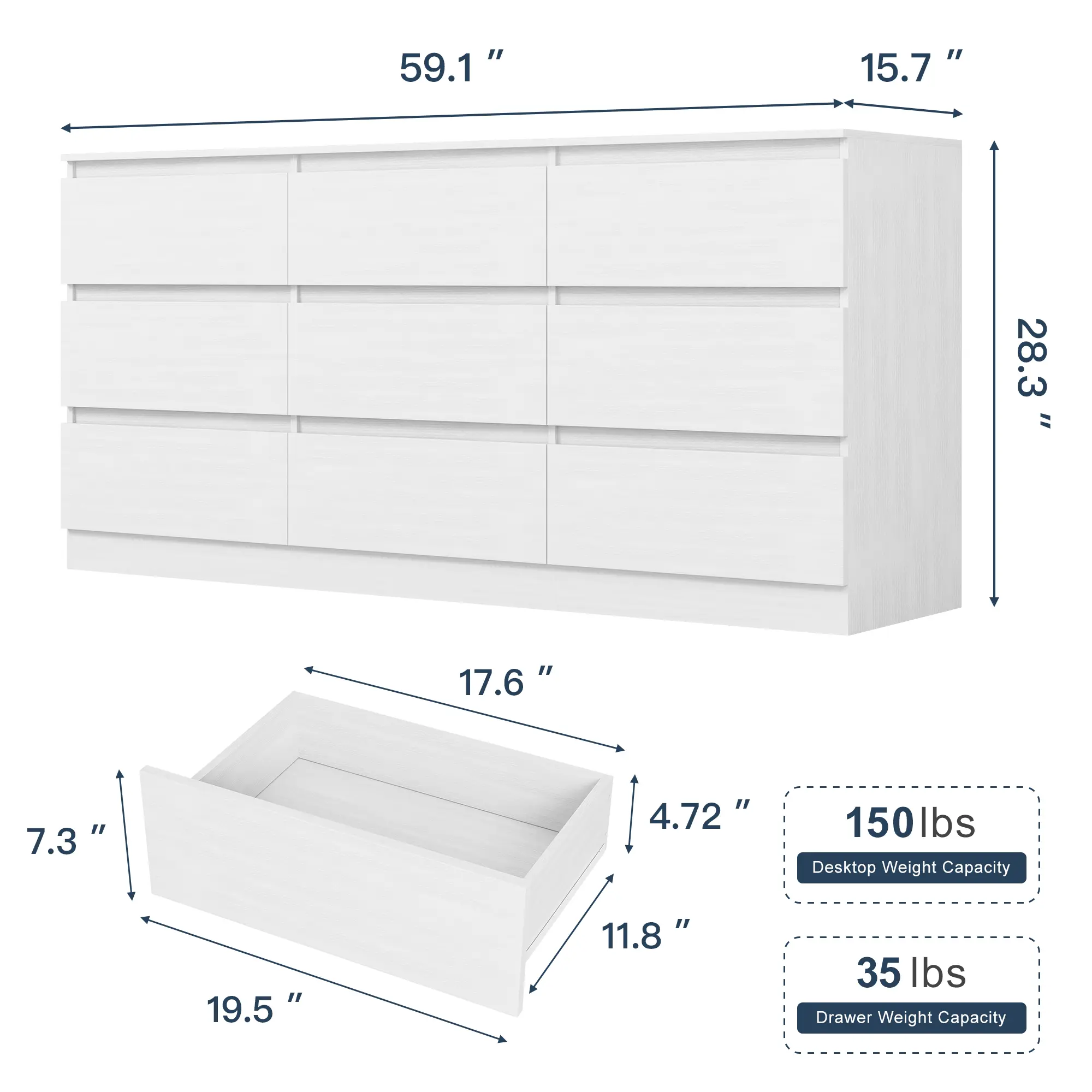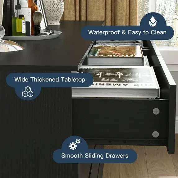 【Sturdy Frame】This dresser features a premium MDF wood construction, ensuring exceptional stability and durability. Its water-resistant and scratch-resistant finish, combined with durable drawer slides, guarantees long-term reliable use.
