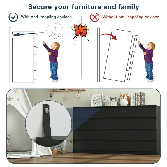 【Child safety anti-tip lock】 Family safety comes first! The integrated anti-tip system allows for secure wall mounting, providing ultimate stability and protection—a basic feature for families with active children or pets.