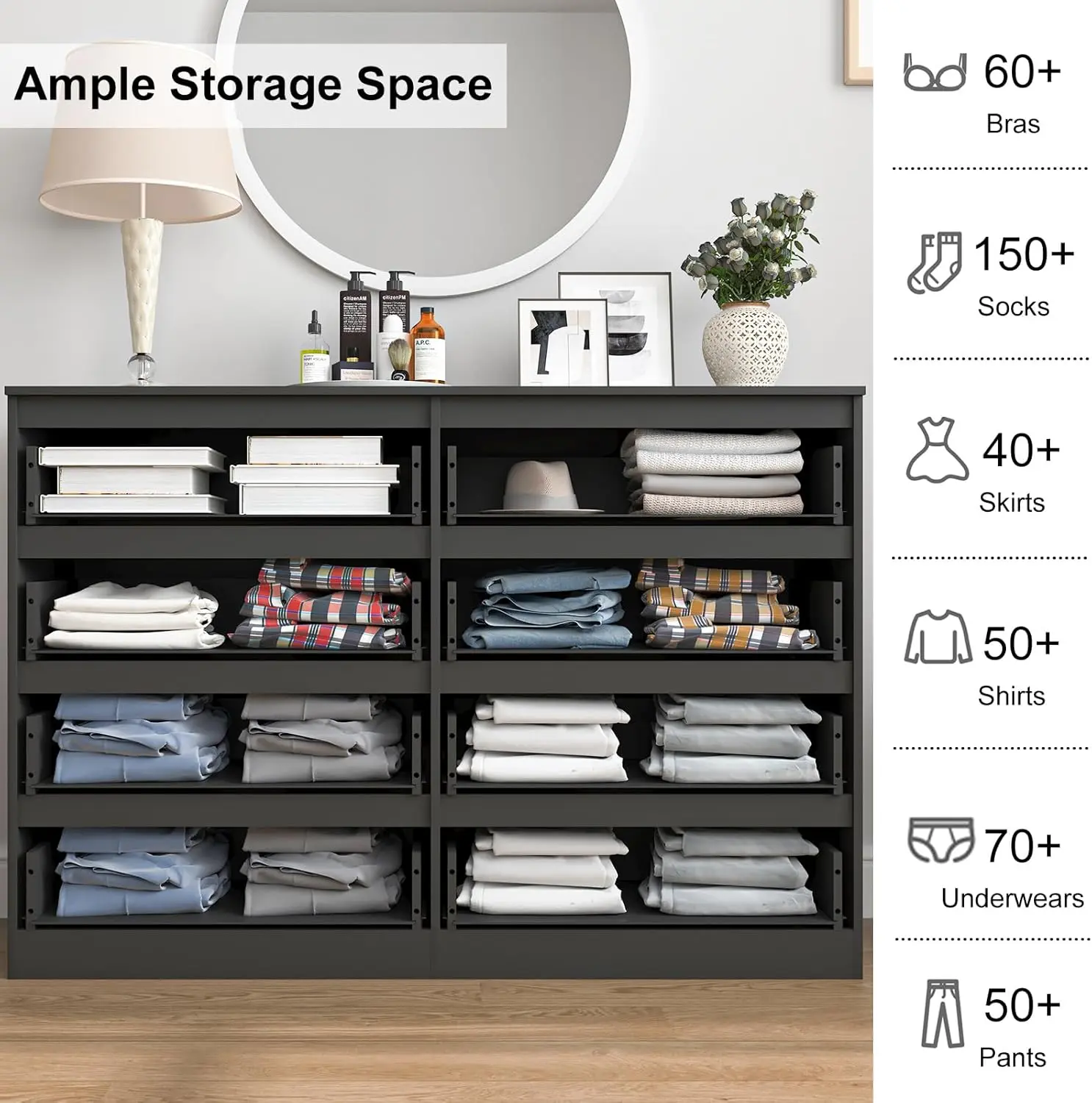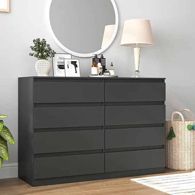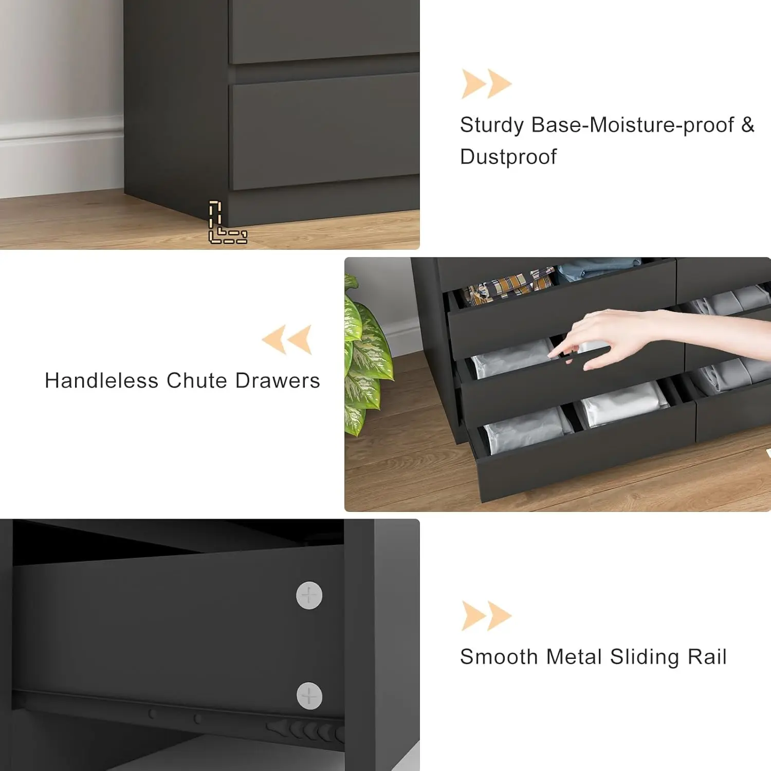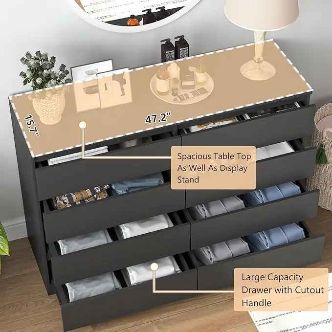 【Sturdy Frame】This dresser features a premium MDF wood construction, ensuring exceptional stability and durability. Its water-resistant and scratch-resistant finish, combined with durable drawer slides, guarantees long-term reliable use.