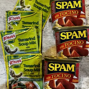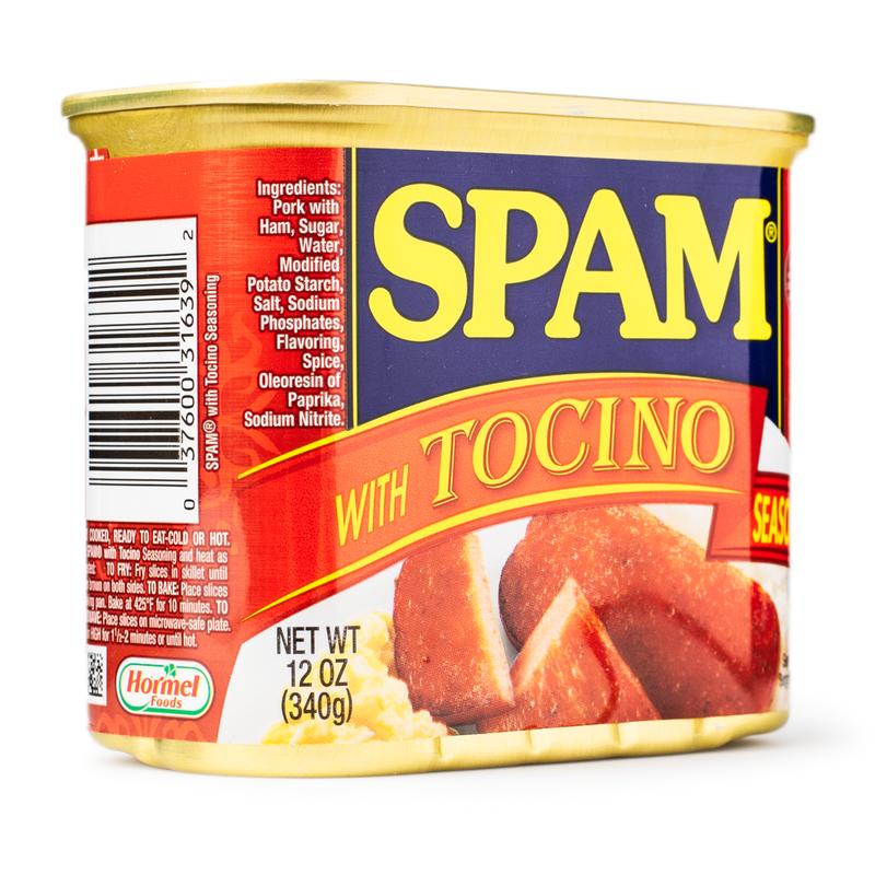 ↵ ↵↵Hormel Introduces Tocino Spam↵↵Spam is so big in the Philippines that in 2014 Hormel introduced Tocino Spam. Tocino, which in Spanish means bacon, is a sweet and salty cured pork. In Filipino cuisine, it is eaten at breakfast, part of a meal called tosilog, which is tocino served with garlic fried rice and an over-easy fried egg. Just like Spam, tocino goes perfect with fried, runny eggs and rice, so creating this new flavor was genius!↵↵Nothing beats waking up to smell of frying Spam, this Tocino Spam adds a new twist to the Tosilog Filipino breakfast. Sarap!↵↵ ↵↵Yes, SPAM® Tocino is back to steal your hearts! This legendary flavor is making Filipino fans head-over-heels. Tocino is sweet cured meat similar to Chinese Char Siu or sweet Bacon. SPAM specifically made this sweet and meaty flavor for their Filipino fans all over the world!↵↵A gem that was lost for a few years…the rare SPAM® with Tocino Seasoning is now on Weee! Grab yours now before they’re gone.↵↵↵With SPAM® Tocino, you can also make any creation but sweeter! Reunite with your favorite sweet luncheon meat with fun recipes like Sizzling Sisig, Silog Burrito, and Filipino Lumpia Musubi.↵↵SPAM® Tocino Sizzling Sisig↵↵↵↵An iconic Filipino dish but with your favorite SPAM®! Balance the smoky flavor of a classic Sisig plus the sweetness from the Tocino flavor. Sarap! ↵↵1. In large skillet over medium-high heat, heat oil. Add diced SPAM®, onions and garlic. Cook 10 to 15 minutes or until SPAM® is crisped and vegetables are tender.↵↵2. Add juice, green chili and red chili (if using). Season to taste with salt and pepper.↵↵3. Heat sizzling platter.↵↵4. Add SPAM® mixture to the platter. Top with eggs. Serve with Garlic Fried Rice.↵↵5. In large skillet, over medium high heat, heat oil. Add garlic; sauté 1 to 2 minutes or until light brown. Add rice and salt. Stir-fry 2 to 3 minutes or until well combined and heated through.↵↵SPAM® Tocino Silog Burrito↵↵↵↵The term “silog” is a kind of Filipino breakfast that includes both SI as in sinangag and LOG as in itlog or egg. For Tosilog, short for Tocino Silog, it included Tocino as its protein. ↵↵ ↵↵1. Heat oil and pan fry SPAM® strips.↵↵2. In a separate pan, fry the chopped garlic, add the rice, and season with salt.↵↵3. Chop the tomato and white onion. Mix together and season with salt. ↵↵4. In a separate pan, scramble the egg, season with salt, and fry.↵↵5. Chop the spring onions and mix with the sour cream.↵↵6. In the tortilla wrap, assemble the garlic rice, tomato and onion, and SPAM®. Drizzle with a spoon of the sauce, and wrap into a burrito. ↵↵7. Wrap the burrito in foil, and bake in a preheated oven at 180’C for 5-8 minutes. Cut in half, and serve with sauce on the side.↵↵SPAM® Tocino Filipino Lumpia Musubi↵↵↵↵Our favorite Filipino flavors come together in one handheld, snackable musubi: garlic fried rice, lumpia, sweet chili sauce and slices of sizzling SPAM® brand.↵↵ ↵↵1. In large skillet, over medium-high heat, cook SPAM® 3 to 5 minutes or until browned. Remove from skillet.↵↵2. Place 1/3 cup Garlic Fried Rice into musubi press or plastic lined SPAM® can on top of halved nori sheet and press down. Top rice with 2 lumpia (cut to fit if necessary); drizzle with sweet chili sauce and 1 tablespoon green onions. Place one slice of SPAM® on top of musubi stack and press down. Remove press.↵↵3. Wrap nori around each. Moisten one end slightly to fasten together. Repeat to make 8.↵↵↵↵Looking for HormeSpam with Tocino Seasoning delivered to you? Weee!!! has HormeSpam with Tocino Seasoning in Houston, LA, New York, Seattle that can be quickly delivered to you. Weee!!! has delivered HormeSpam with Tocino Seasoning directly to your door. If you're looking for HormeSpam with Tocino Seasoning delivery to HormeSpam with Tocino Seasoning in Houston, LA, New York, Seattle, then count on Weee!!! to get you those hard to find groceries delivered to you!